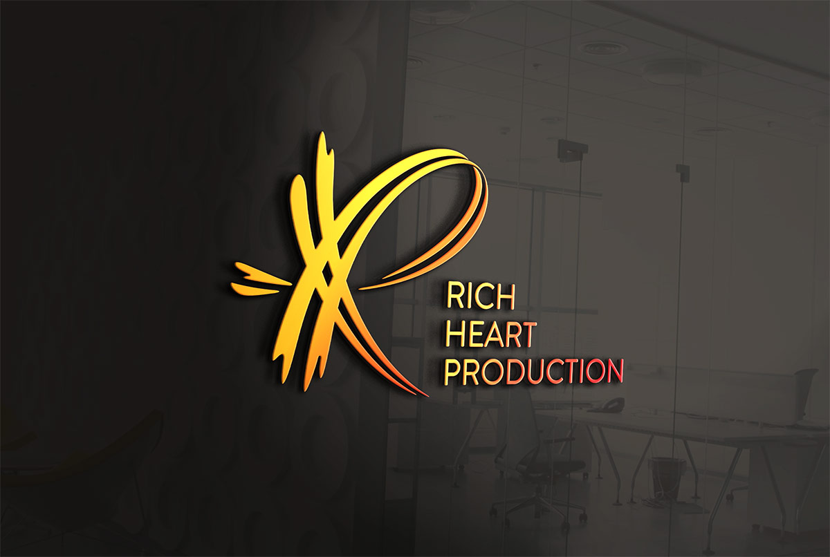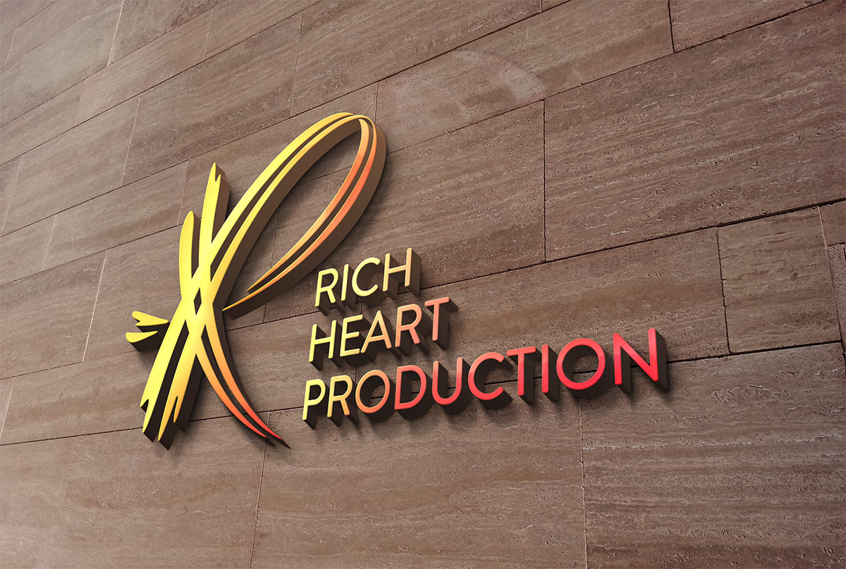 Шрифтове написання назви “RICH HEART PRODUCTION” у логотипі розроблено дизайнерами нашої студії та адаптовано під загальний стиль бренду.