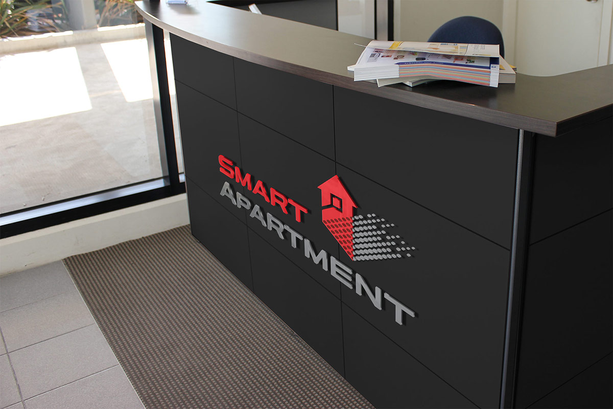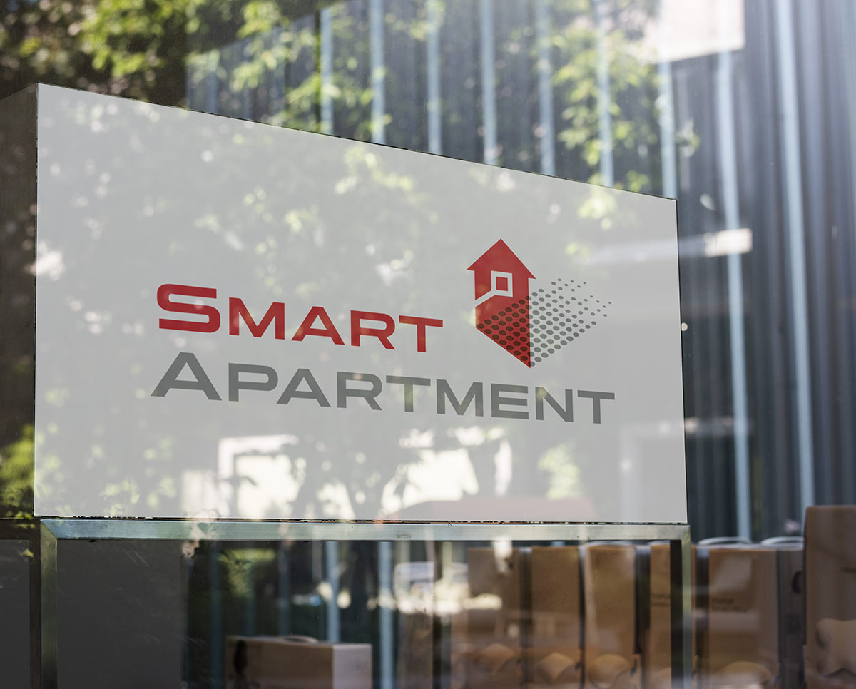 Шрифтове написання назви “SMART APARTMENT” у логотипі розроблено дизайнерами нашої студії та адаптовано під загальний стиль бренду.