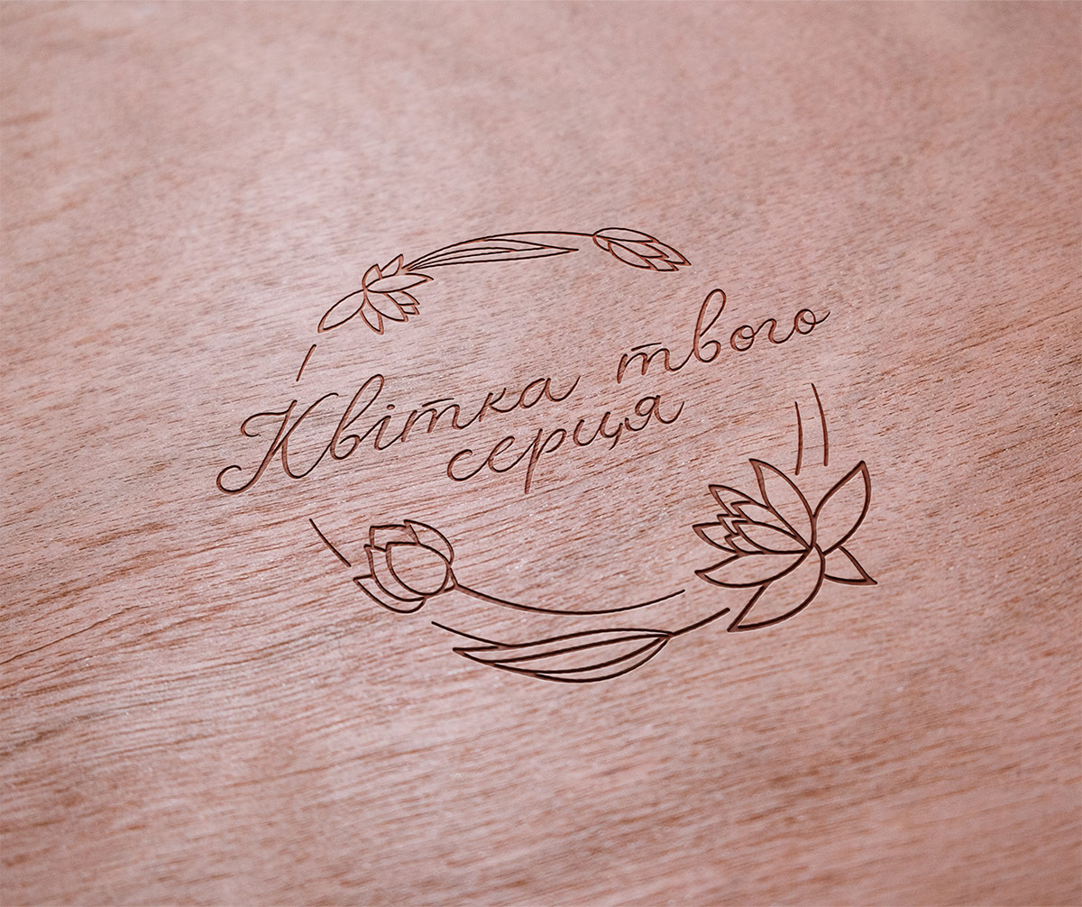 Шрифтове написання назви "Квітка твого серця" в логотипі розроблено дизайнерами нашої студії та адаптовано під загальний стиль студії.