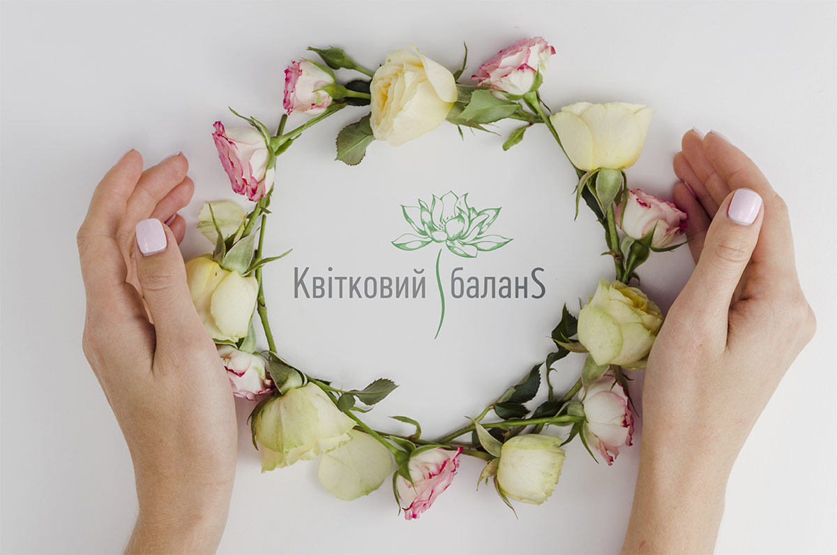 Шрифтове написання назви “Квітковий баланS” у логотипі розроблено дизайнерами нашої студії та адаптовано під загальний стиль бренду.