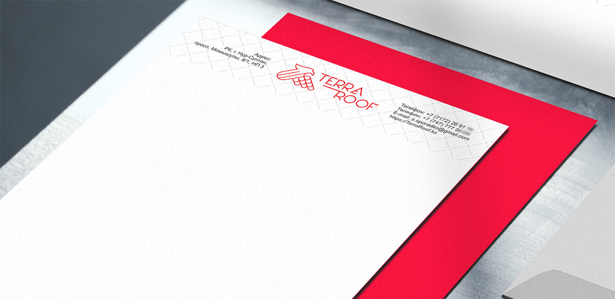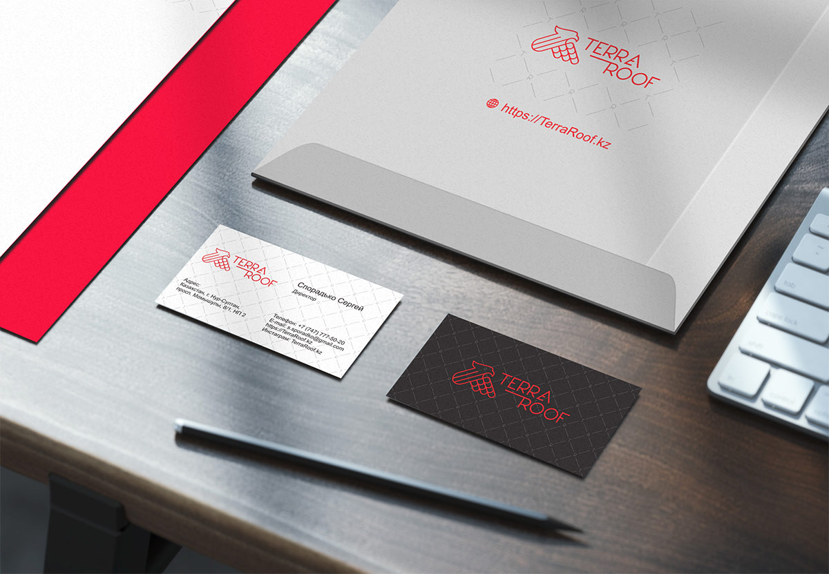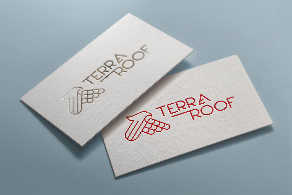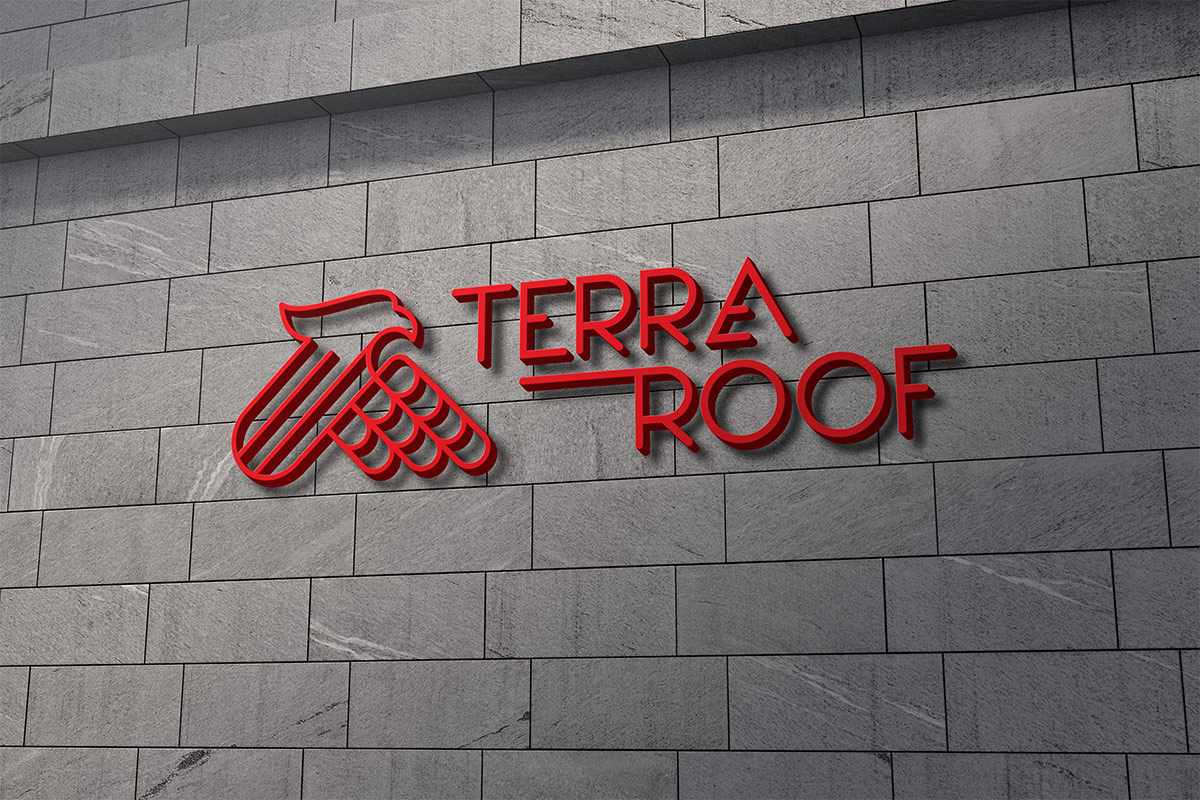 Шрифтове написання назви “TerraRoof” у логотипі розроблено дизайнерами нашої студії та адаптовано під загальний стиль бренду.