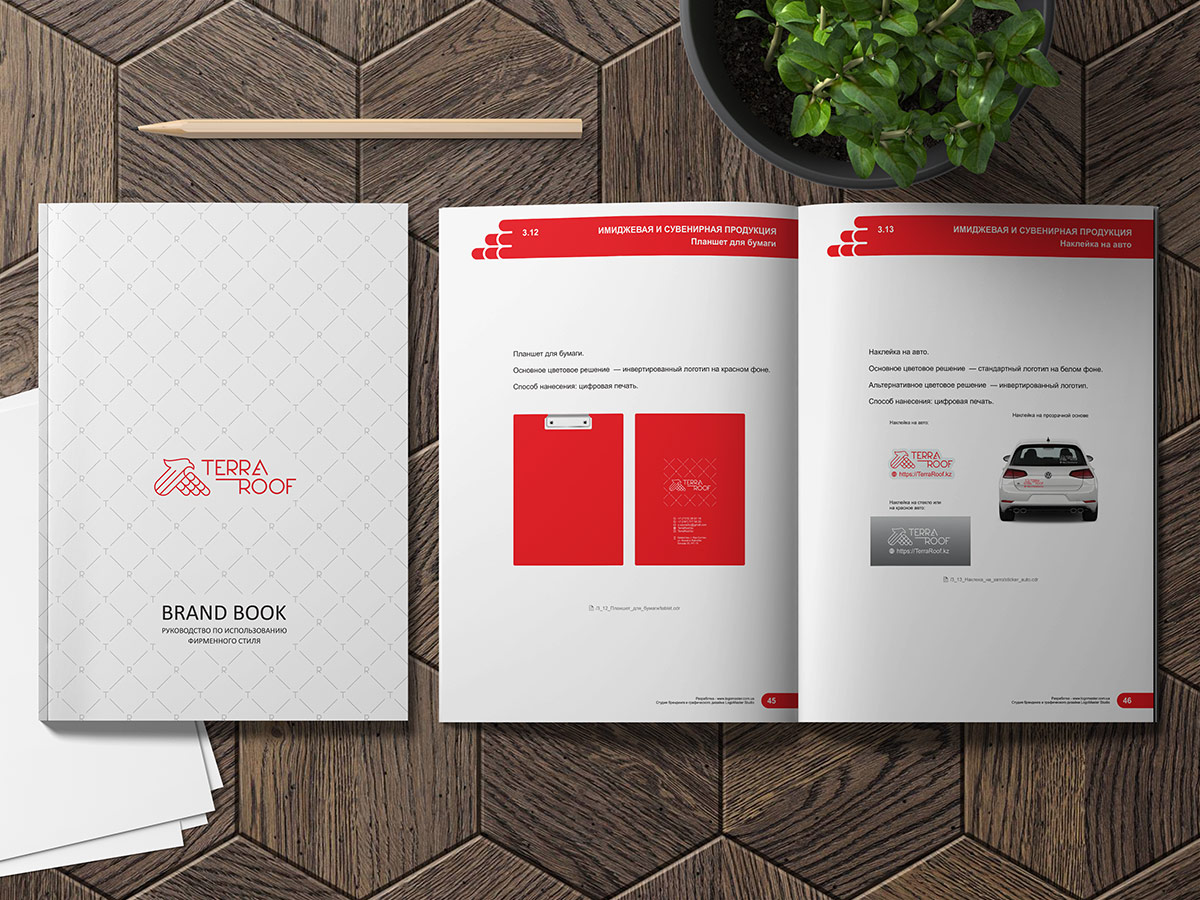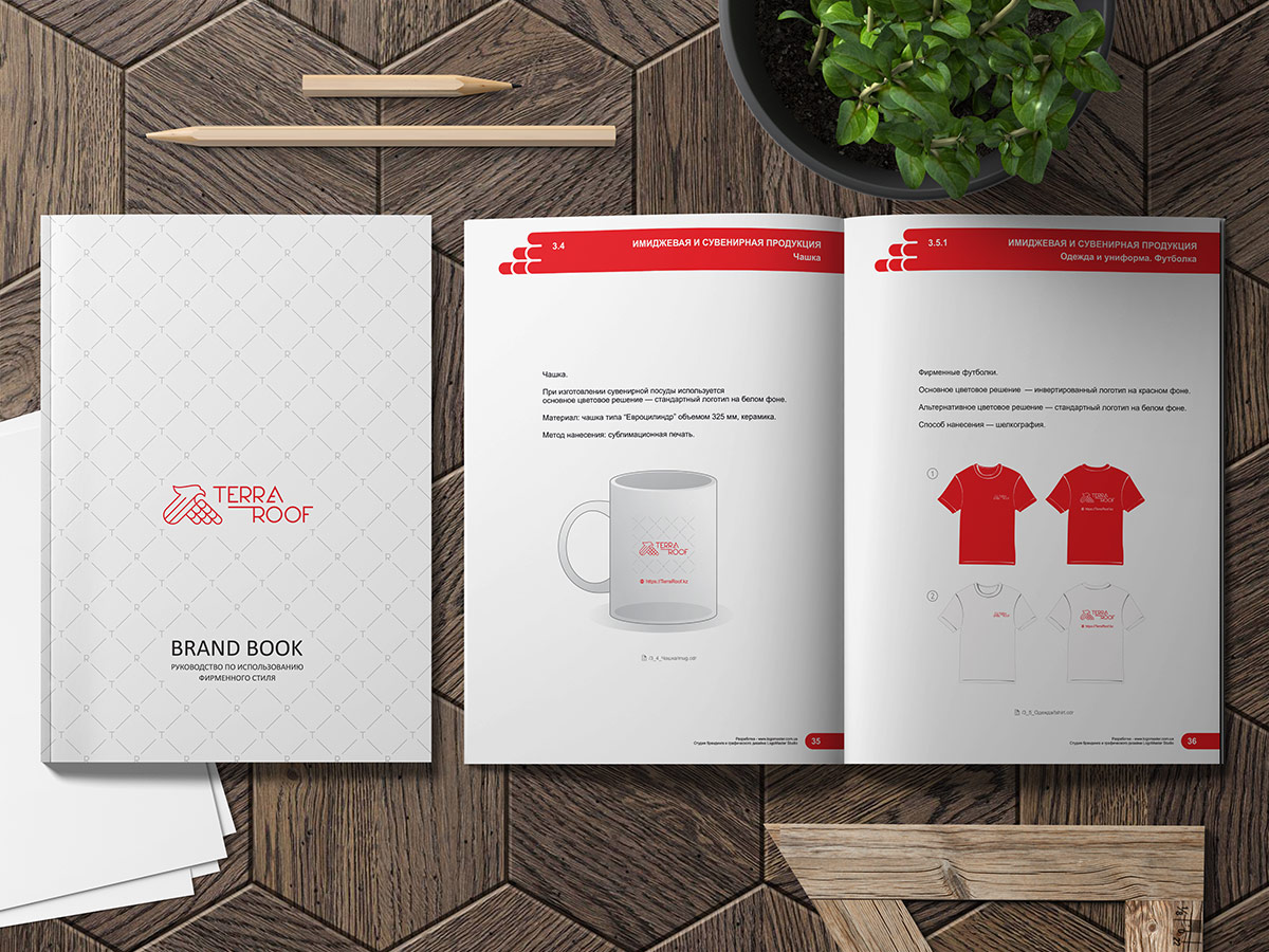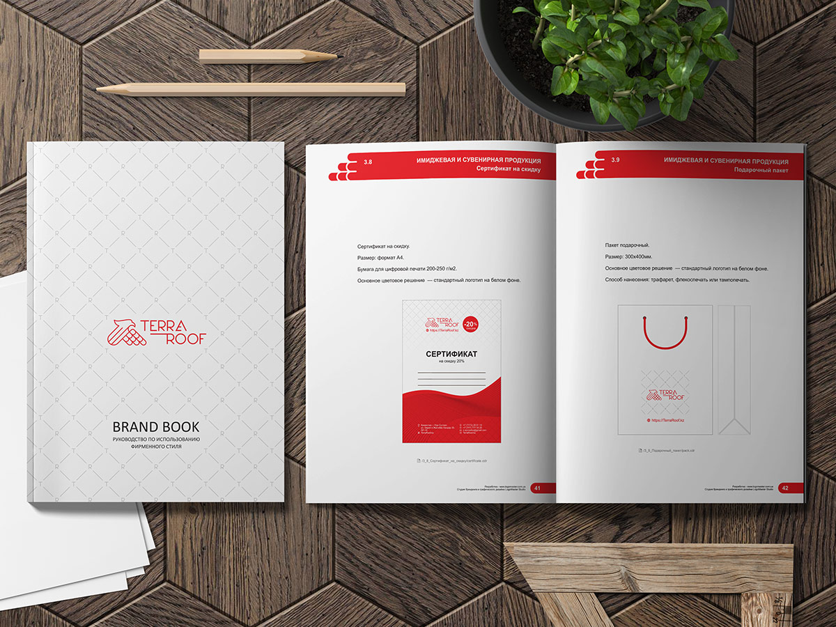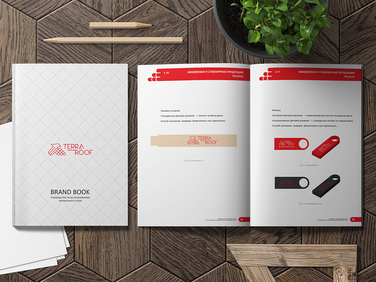 Шрифтове написання назви “TerraRoof” у логотипі розроблено дизайнерами нашої студії та адаптовано під загальний стиль бренду.