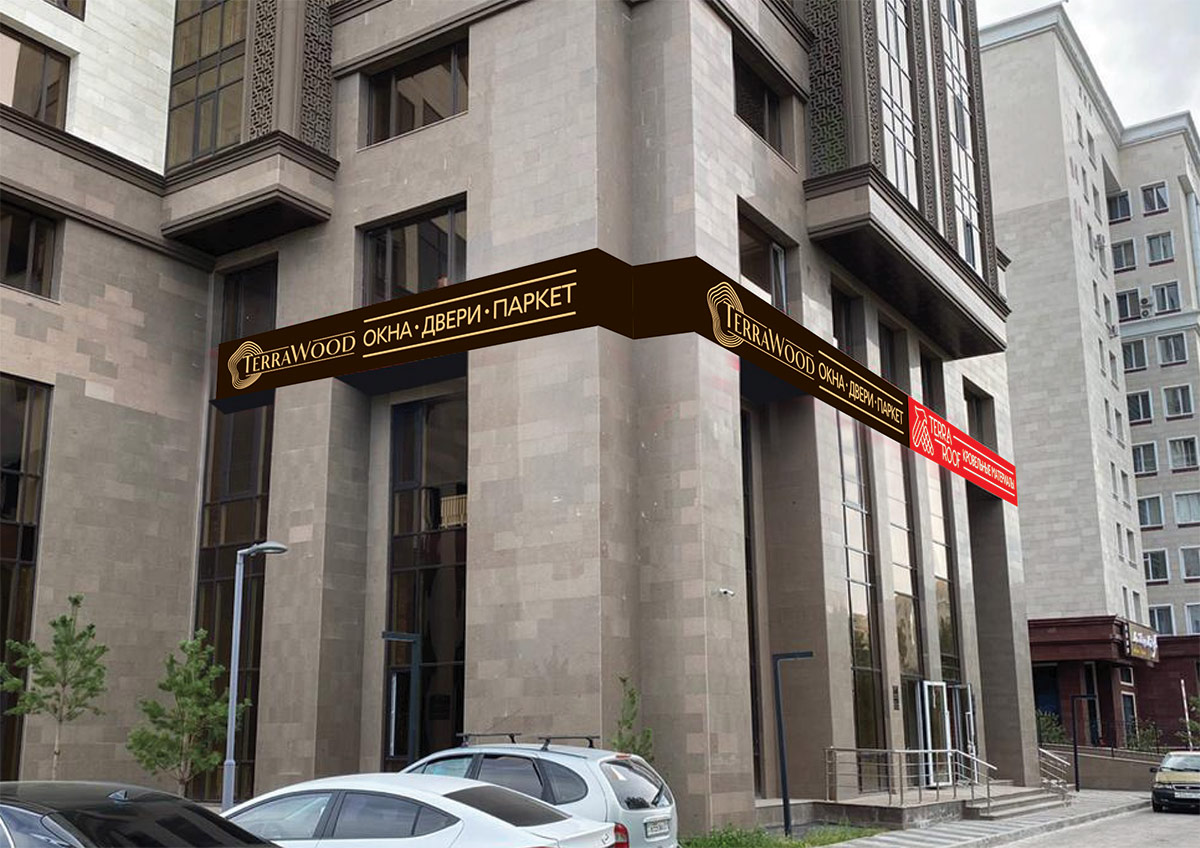 В рамках замовлення було виконано роботу з розробки дизайн-макета зовнішнього оформлення магазину. Вхідна група - це виконане в єдиному фірмовому стилі оформлення фасаду магазину та, по суті, його візитна картка. При розробці дизайну вивіски важливо враховувати, що вона має бути досить великою, щоб бути помітною і перехожим, і людям, які проїжджають у транспорті.