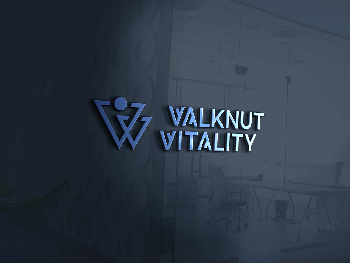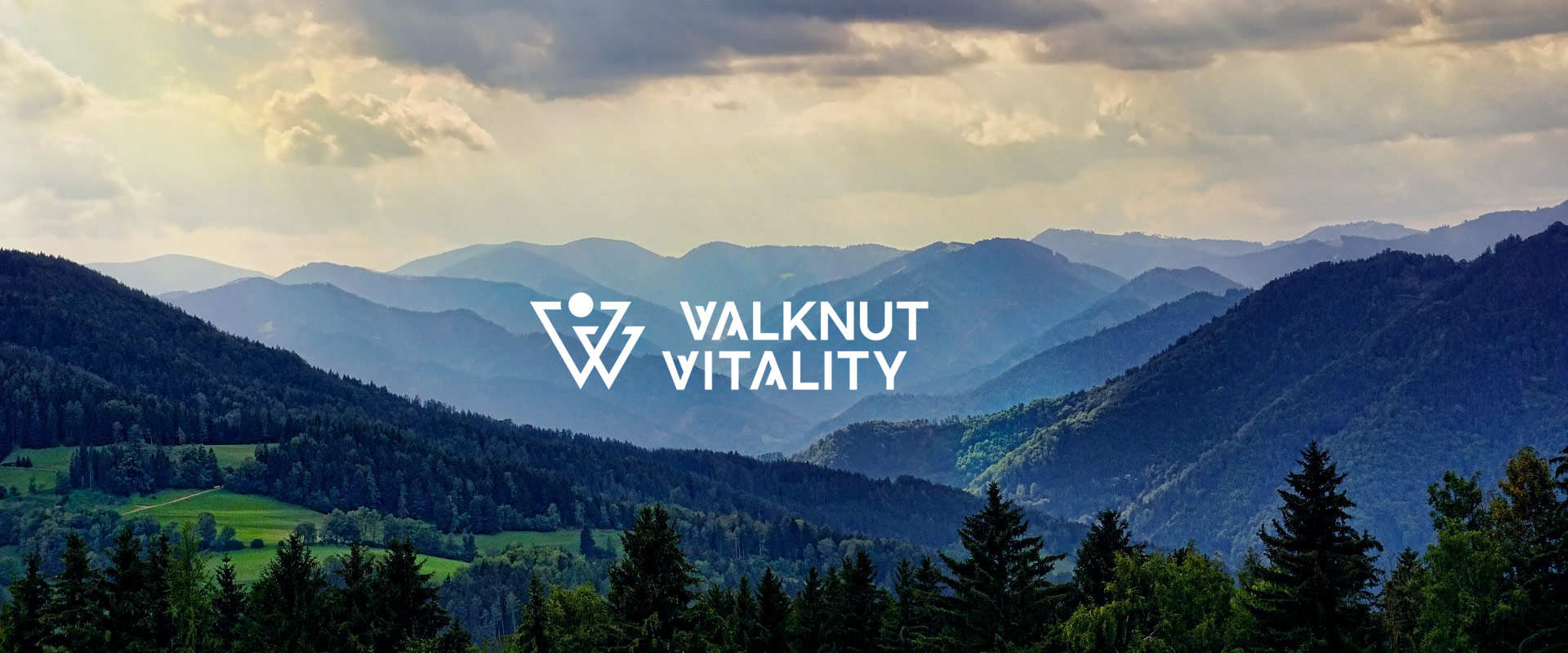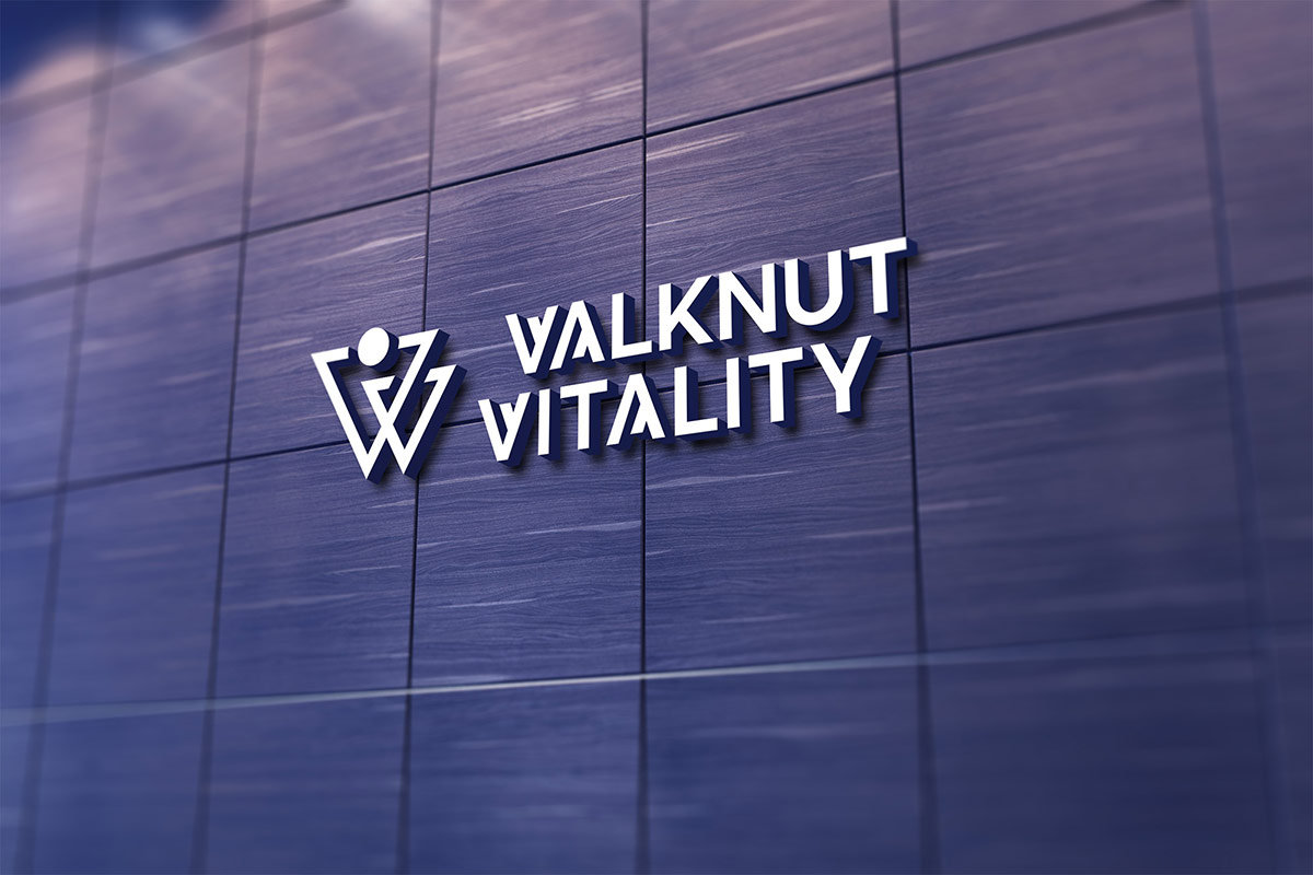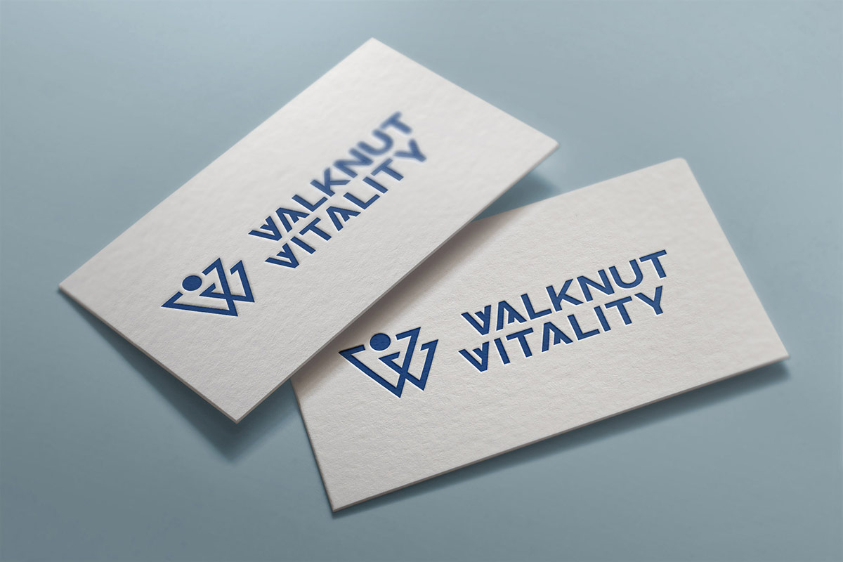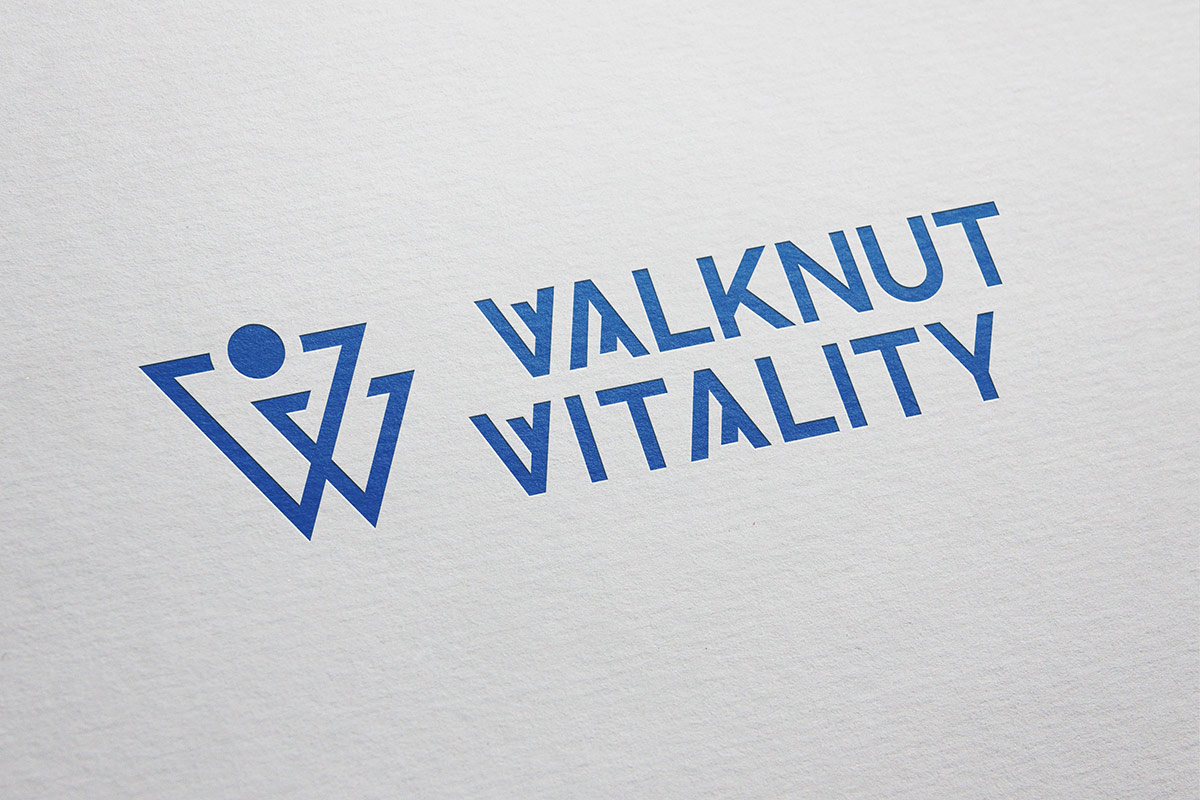 Шрифтове написання назви “VALKNUT VITALITY” у логотипі розроблено дизайнерами нашої студії та виконане у рунічній стилістиці букв.