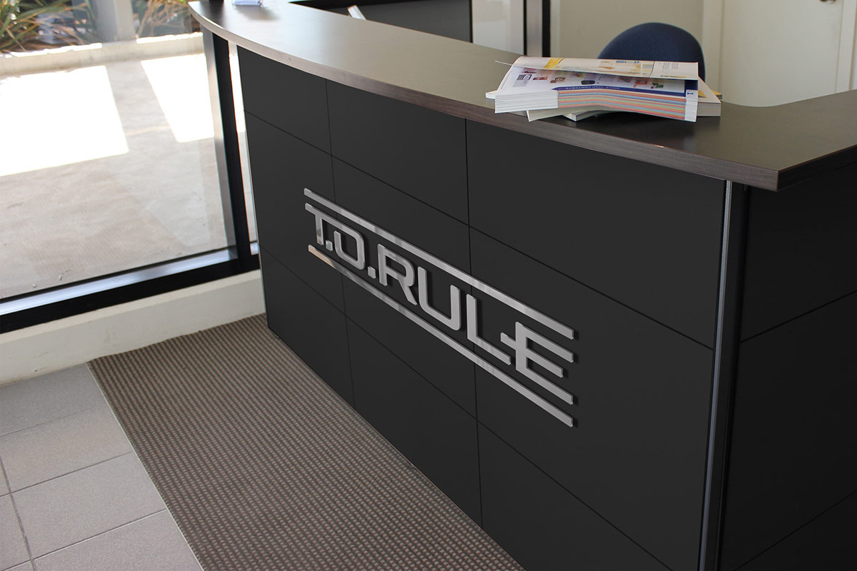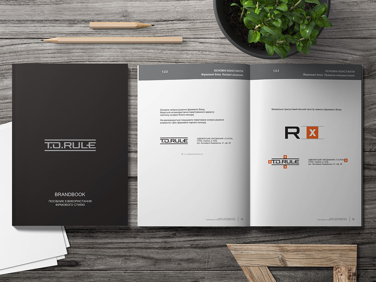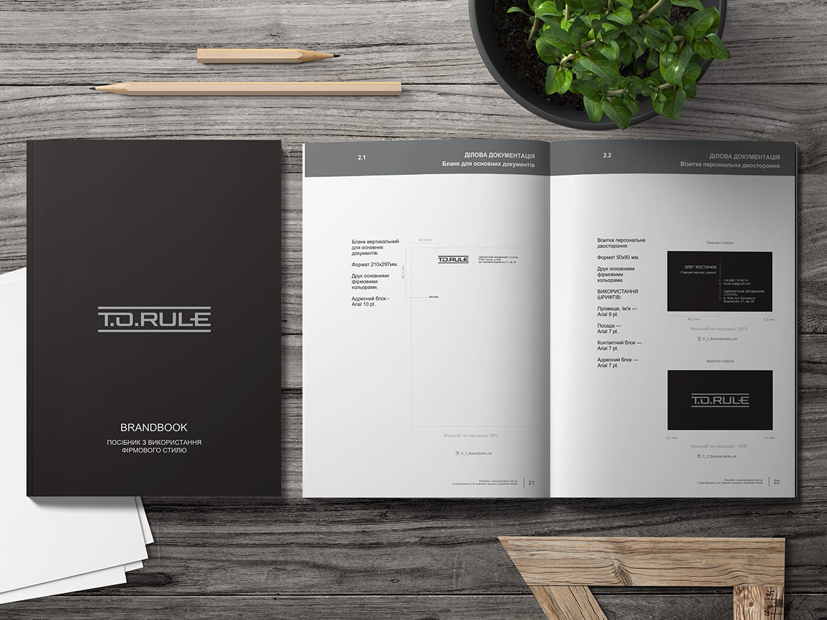 Шрифтове написання назви “T.O.RULE” у логотипі розроблено дизайнерами нашої студії та адаптовано під загальний стиль бренду.