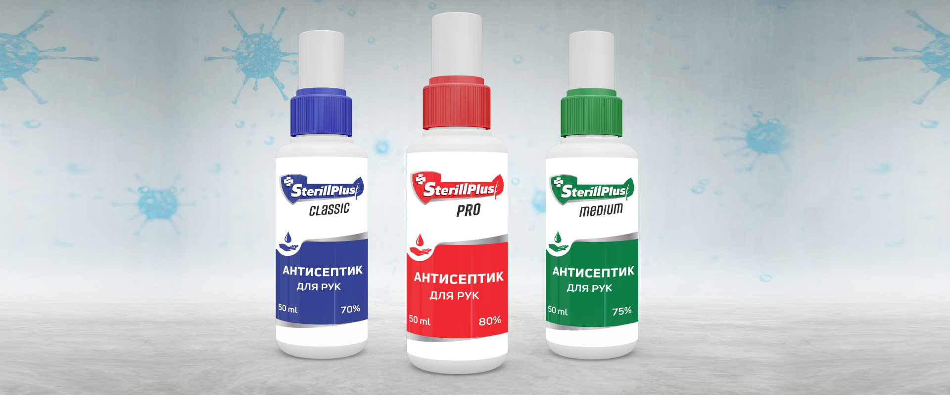 Антисептик для рук SterillPlus (Україна) - це засіб миттєвої дії, що очищає, який ефективно дезінфікує і очищає шкіру від накопичених забруднень, знищуючи до 99,9% шкідливих бактерій. Антибактеріальний засіб дозволяє відчути миттєву та бездоганну чистоту рук. Санітайзер має зручний формат, що дозволяє брати спрей для рук із собою. Він не залишає липкості, дарує відчуття чистоти та свіжості. Їм дуже зручно користуватися протягом дня, особливо, коли немає можливості вимити руки з милом. Склад: Alcohol (70%), Agua, Ricinus Communis (Castor) Seed Oil, Perfume, Pigment, Arachidyl та Behenyl Alcohol та Arachidyl Glucoside.