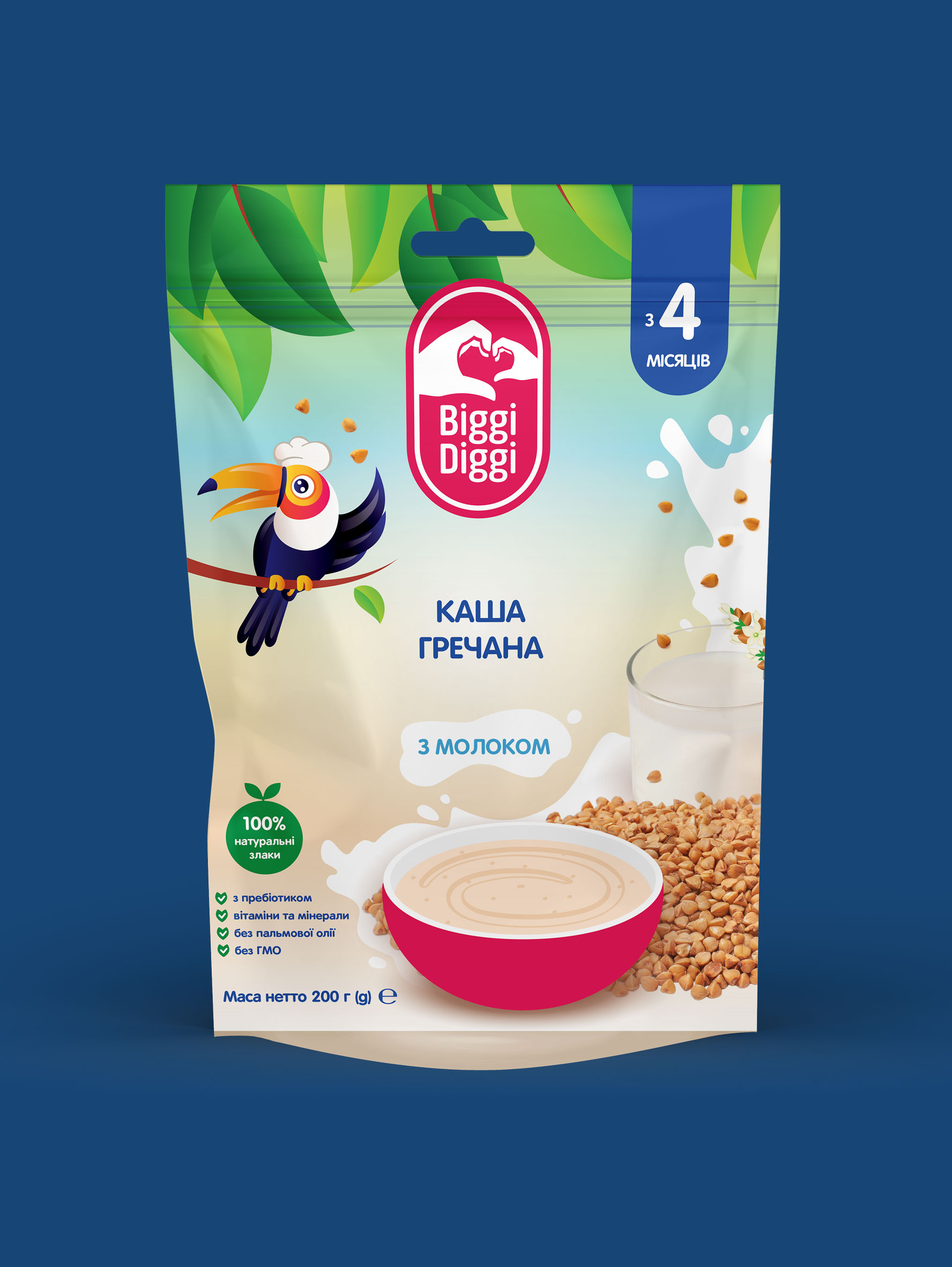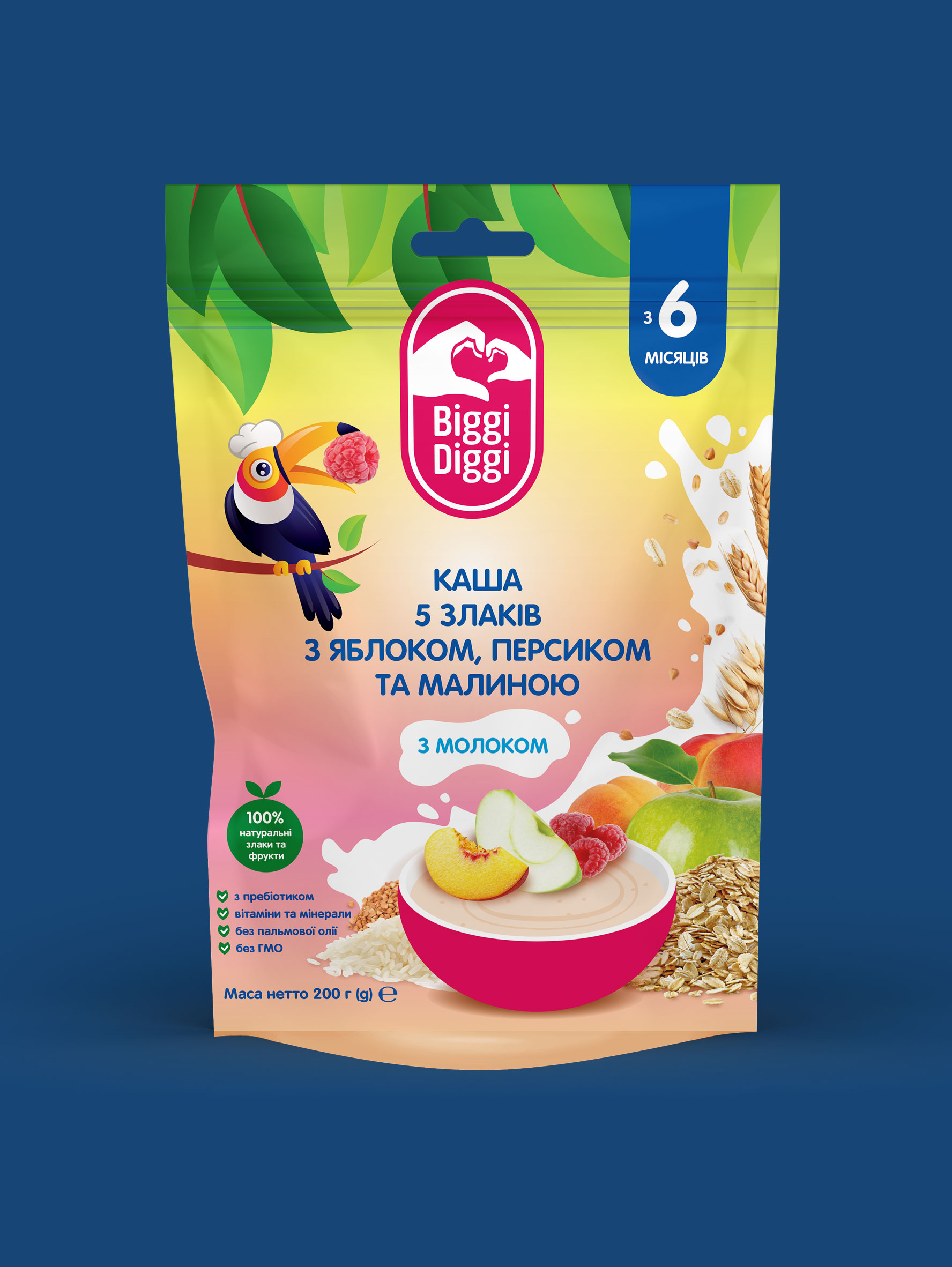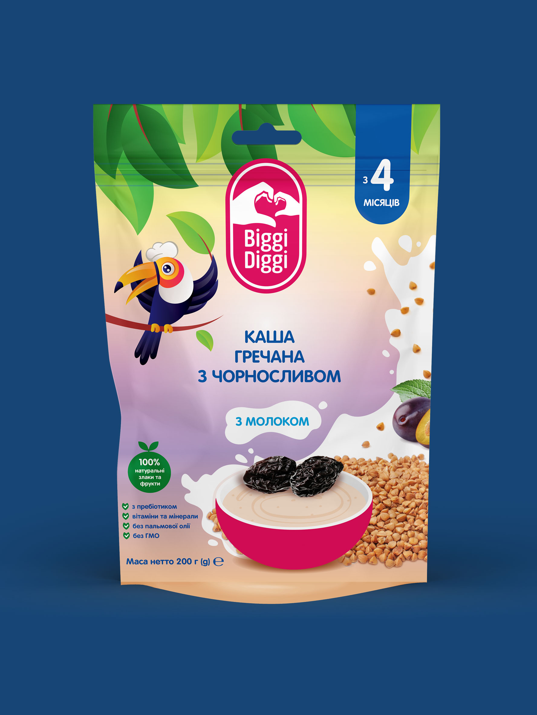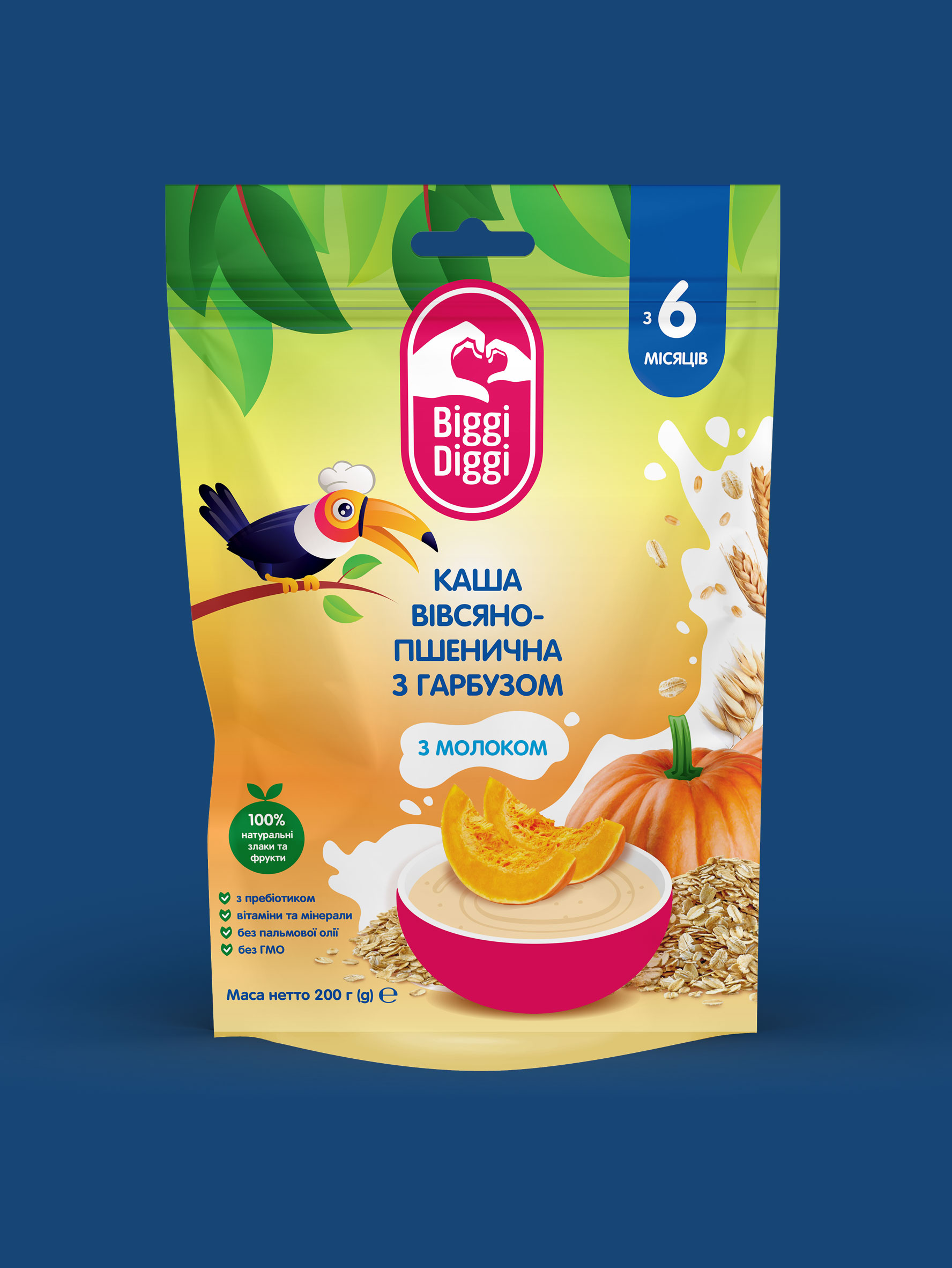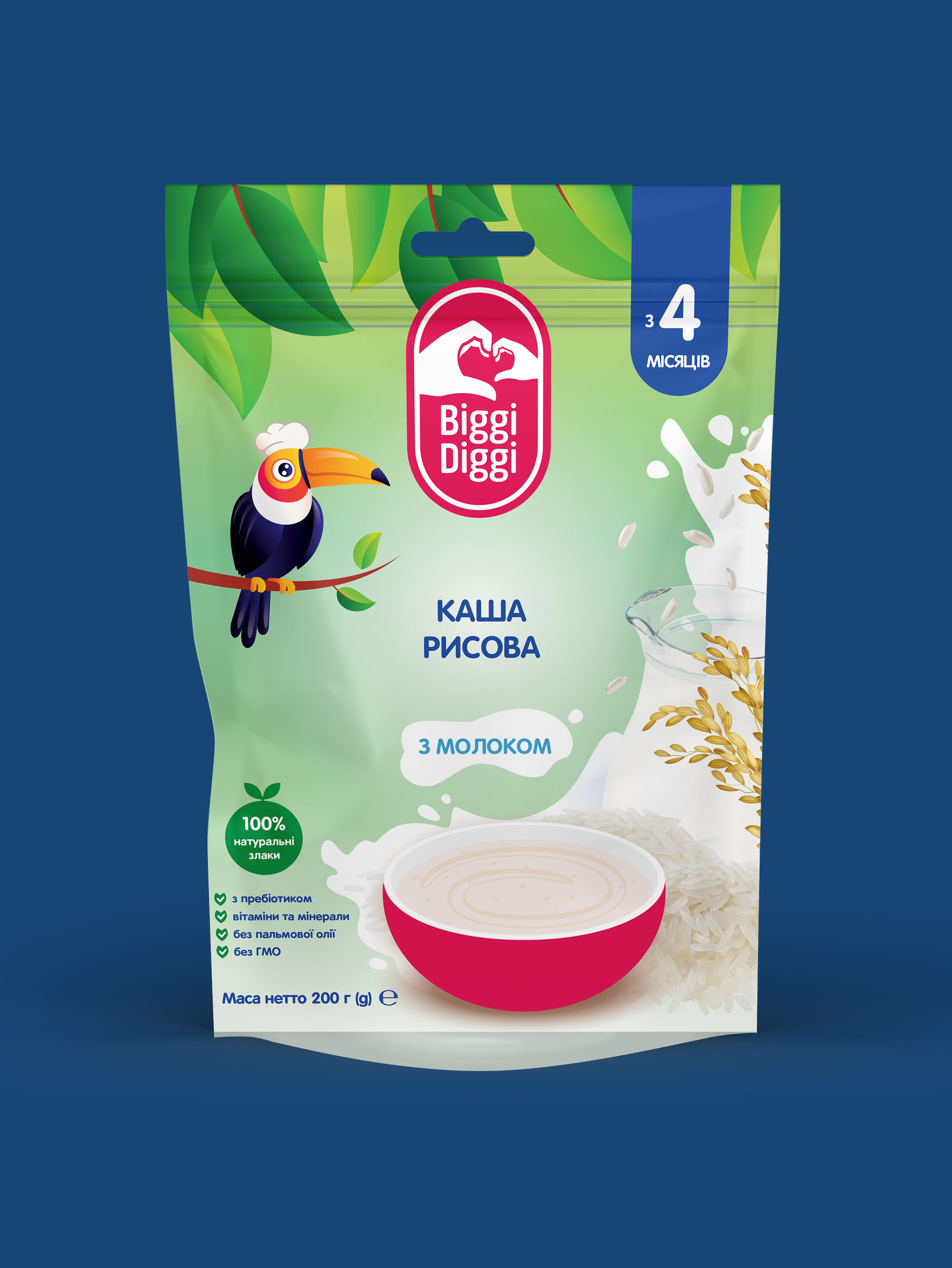 "Biggi Diggi" - це бренд, який розуміє важливість здорового харчування для малюків. Дитячі каші призначені для дітей від 4 місяців і створені із турботою та любов'ю.