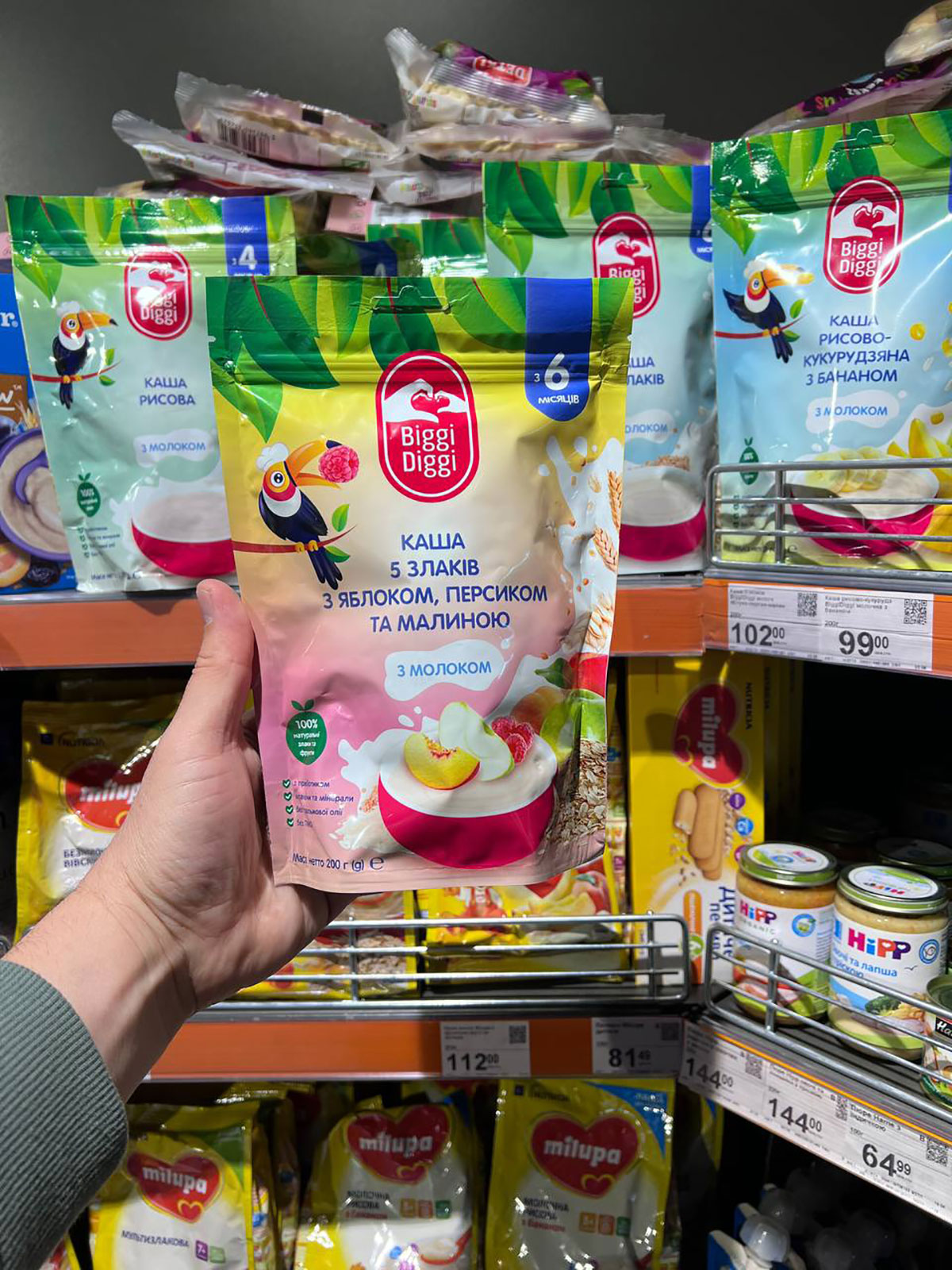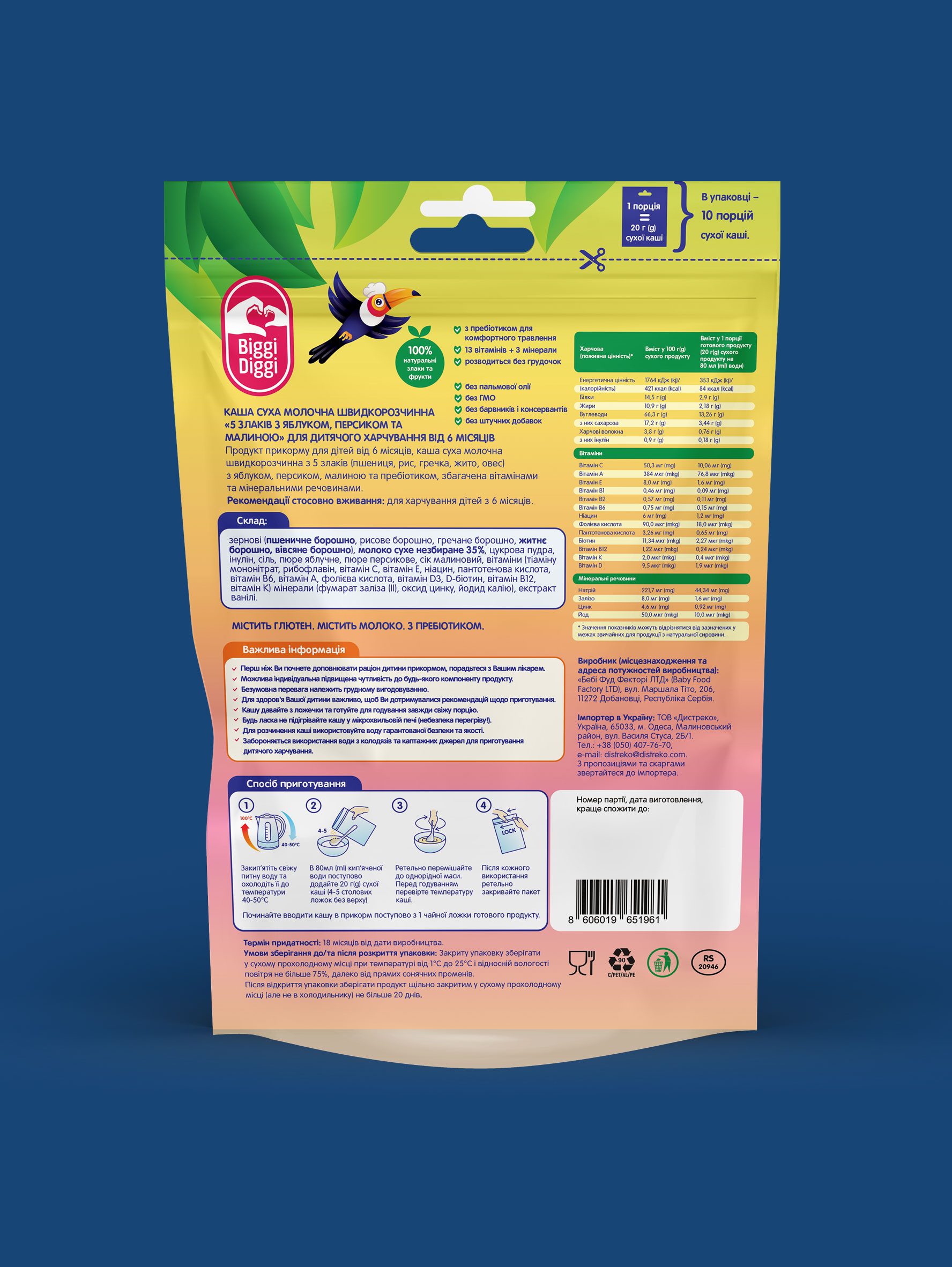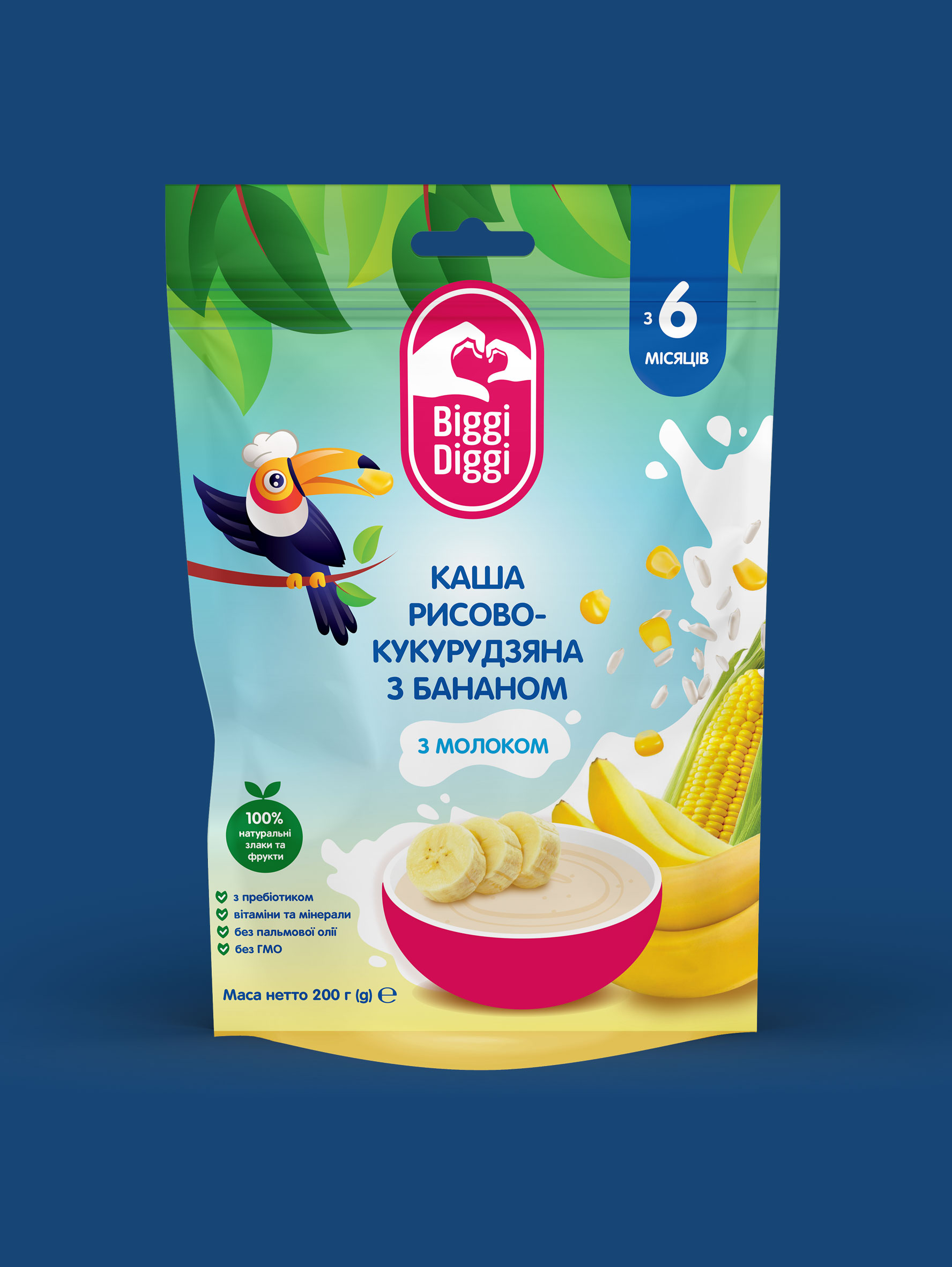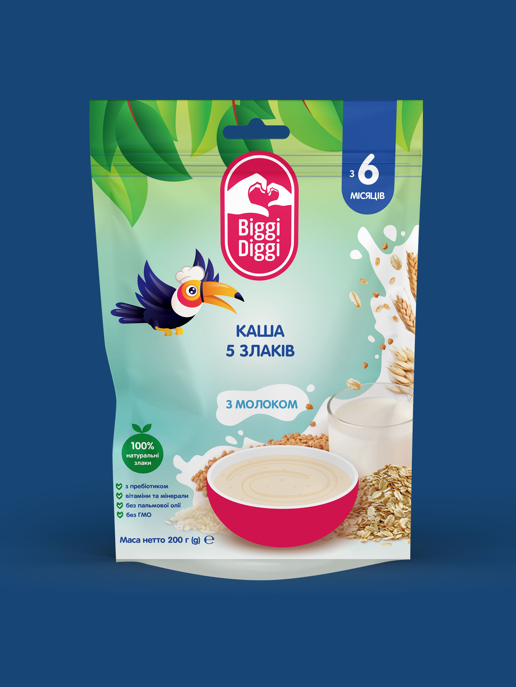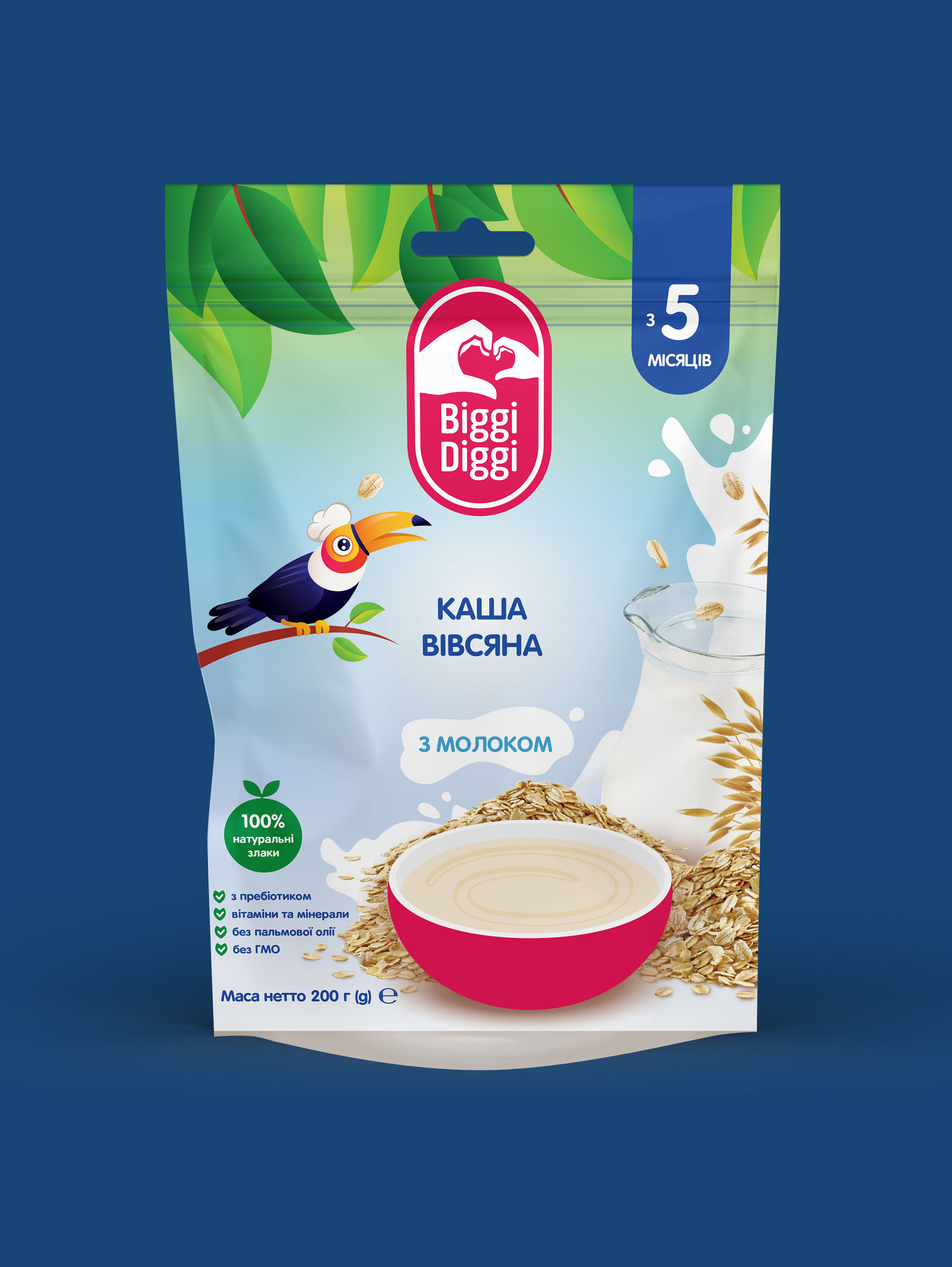 "Biggi Diggi" - це бренд, який розуміє важливість здорового харчування для малюків. Дитячі каші призначені для дітей від 4 місяців і створені із турботою та любов'ю.