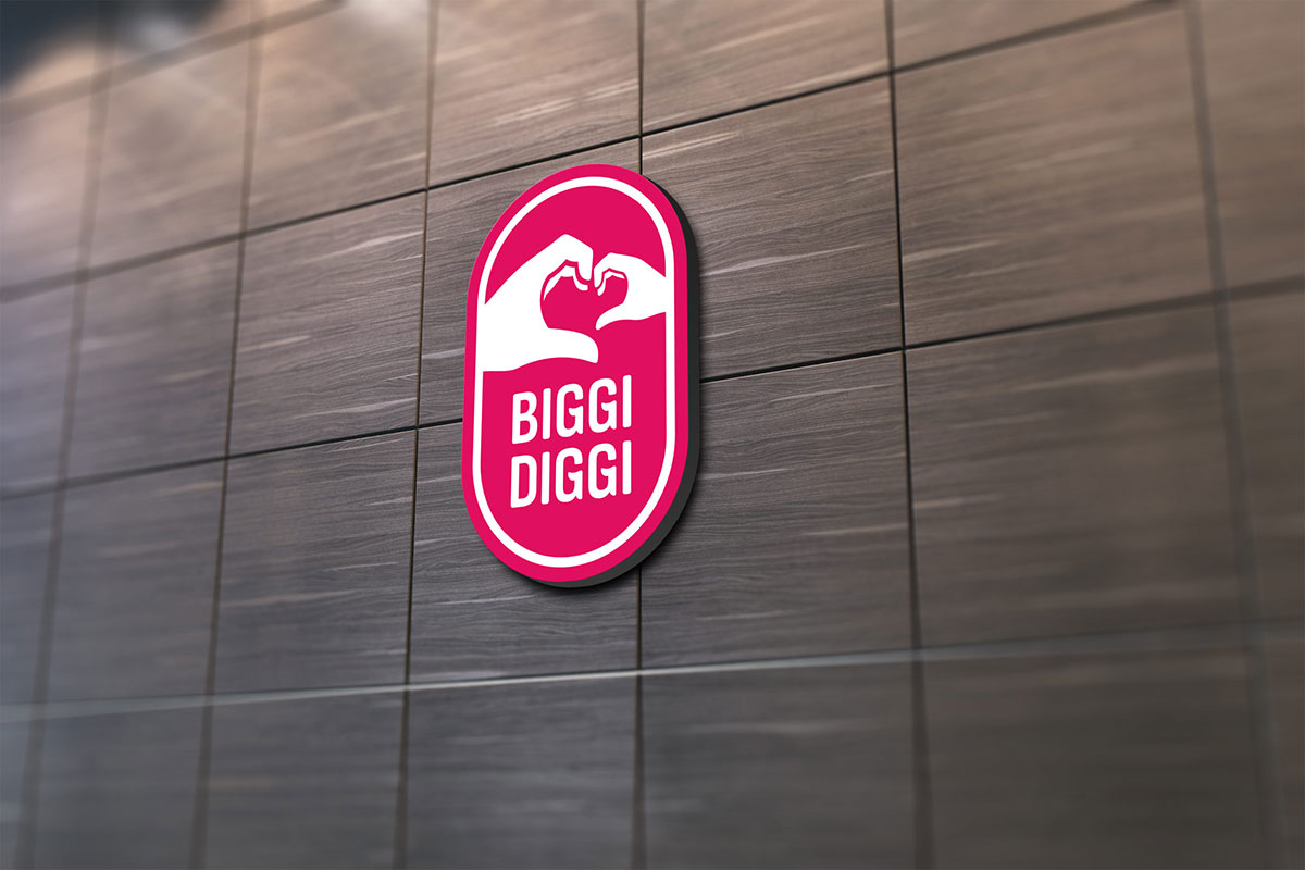 Шрифтове написання назви “Biggi Diggi” розроблено дизайнерами нашої студії та виконане у строгому стилі.