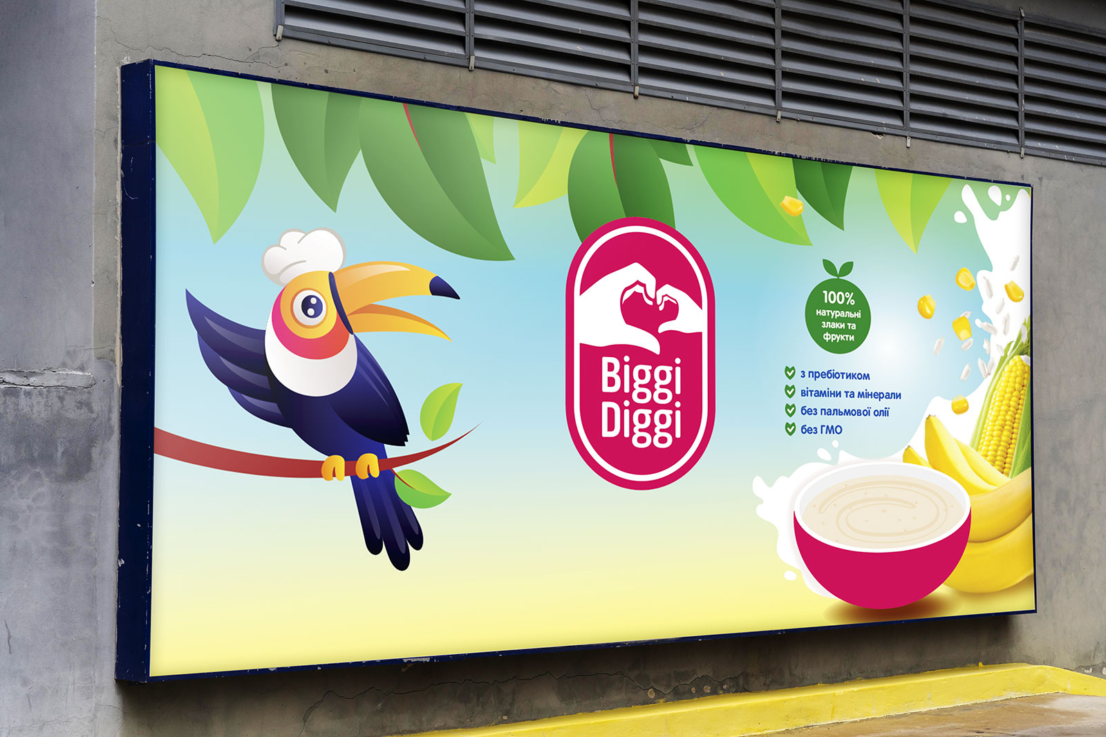 Назва “Biggi Diggi” схожа на ігровий вигук, який батьки вимовляють з бажанням порадувати дитину, пограти з нею, привернути увагу. Таким чином, харчування для дитини асоціюватиметься з чимось хорошим, приємним, веселим та цікавим.