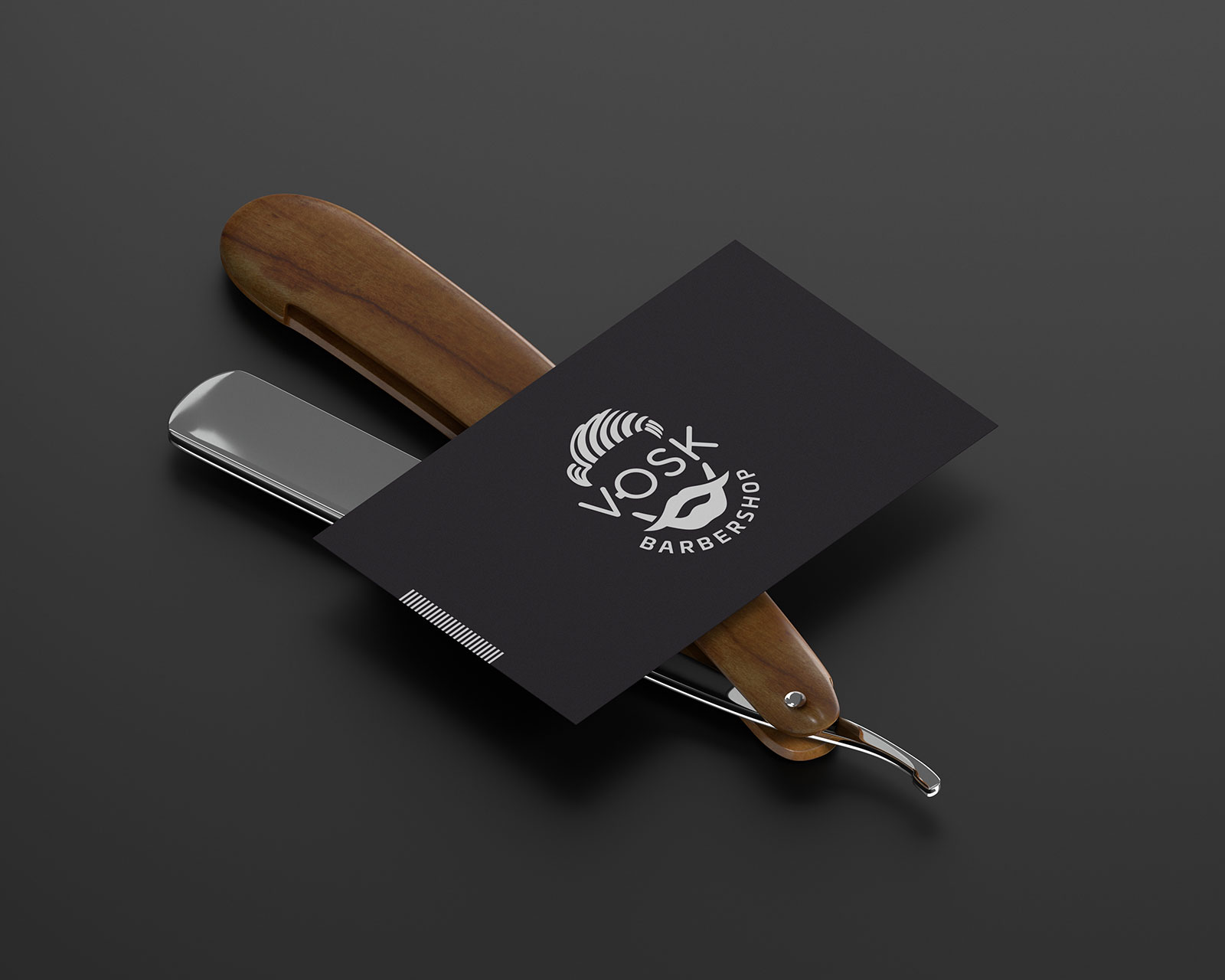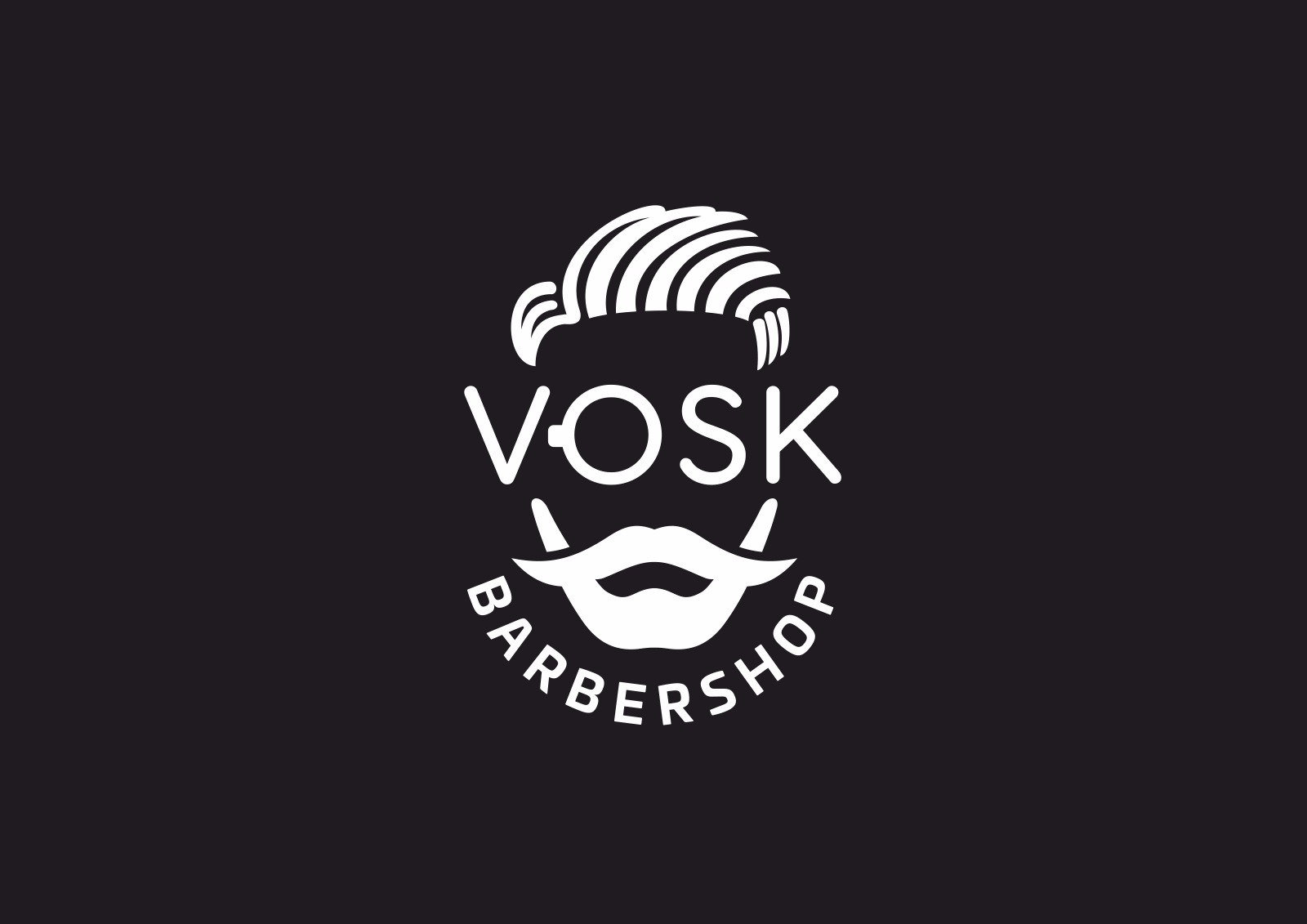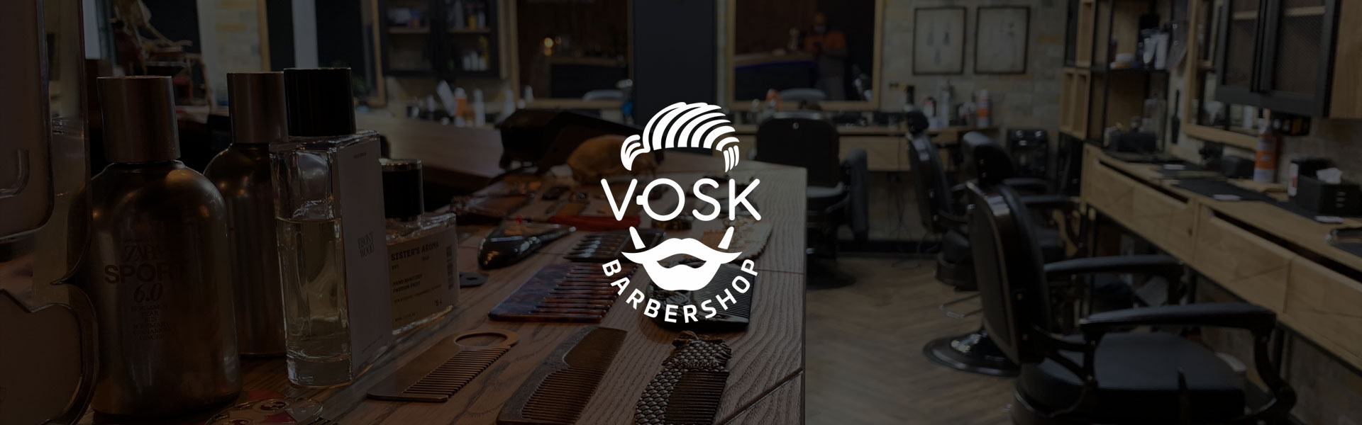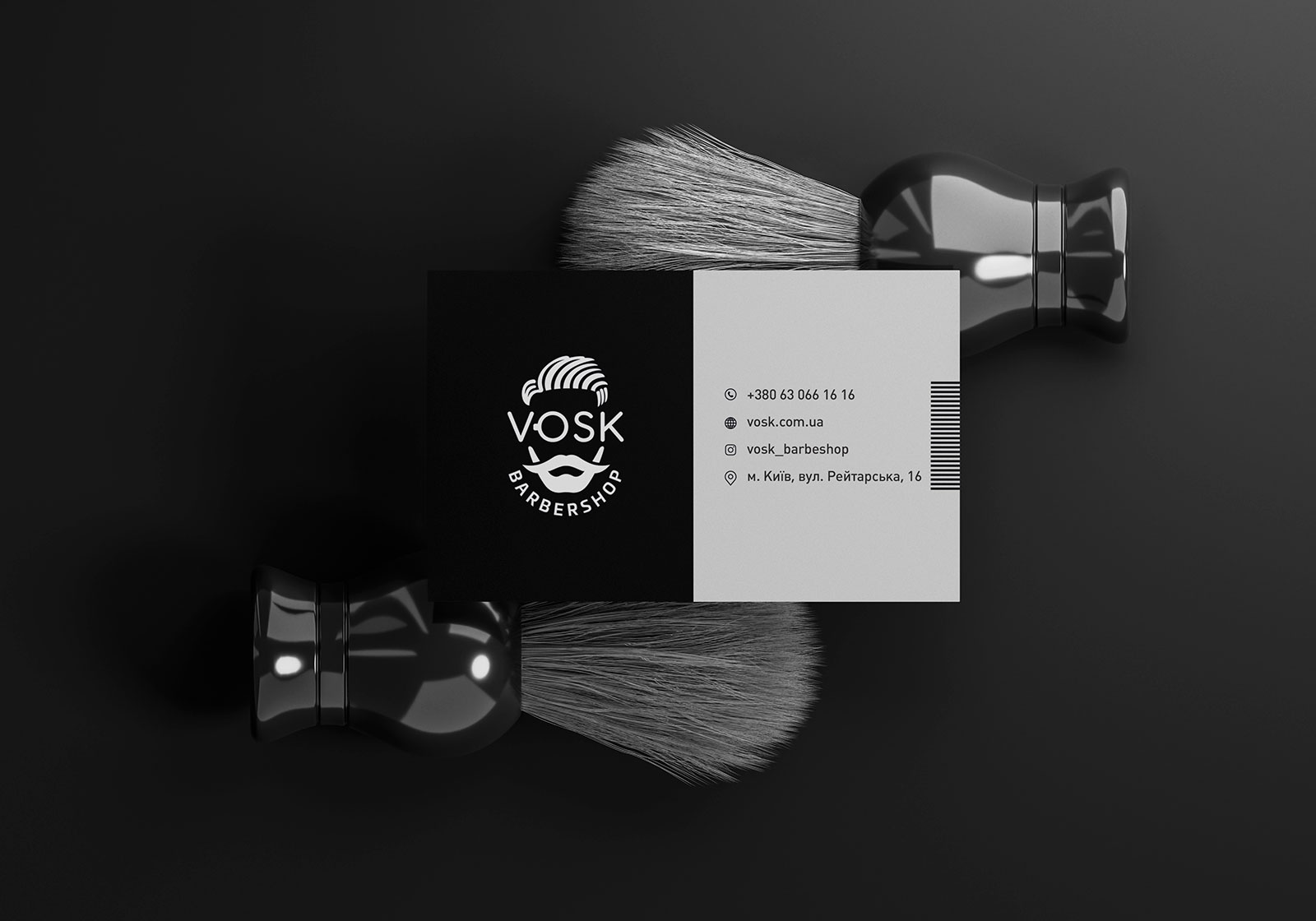 Шрифтове написання назви “VOSK” у логотипі розроблено дизайнерами нашої студії та адаптовано під загальний стиль. Для розшифровки діяльності було використано в логотипі дескриптор “BARBERSHOP”.
