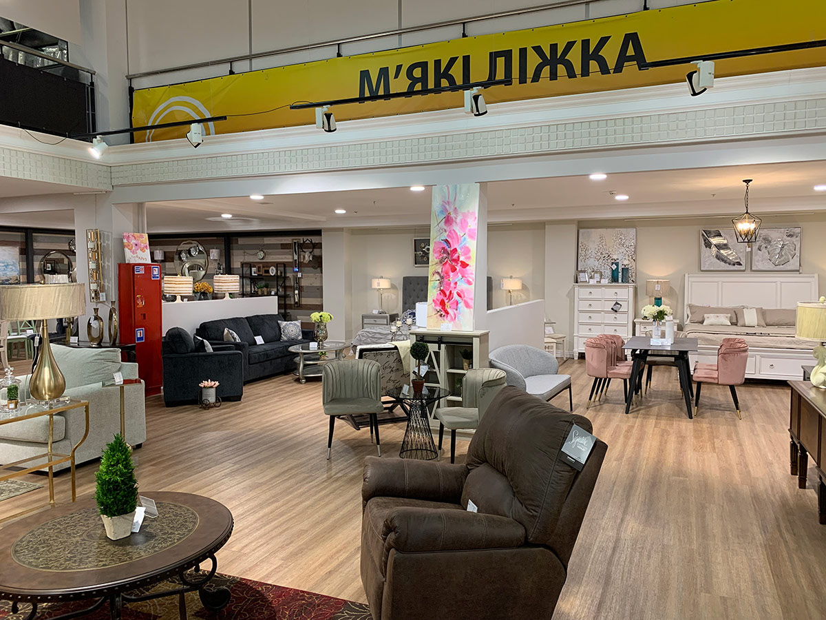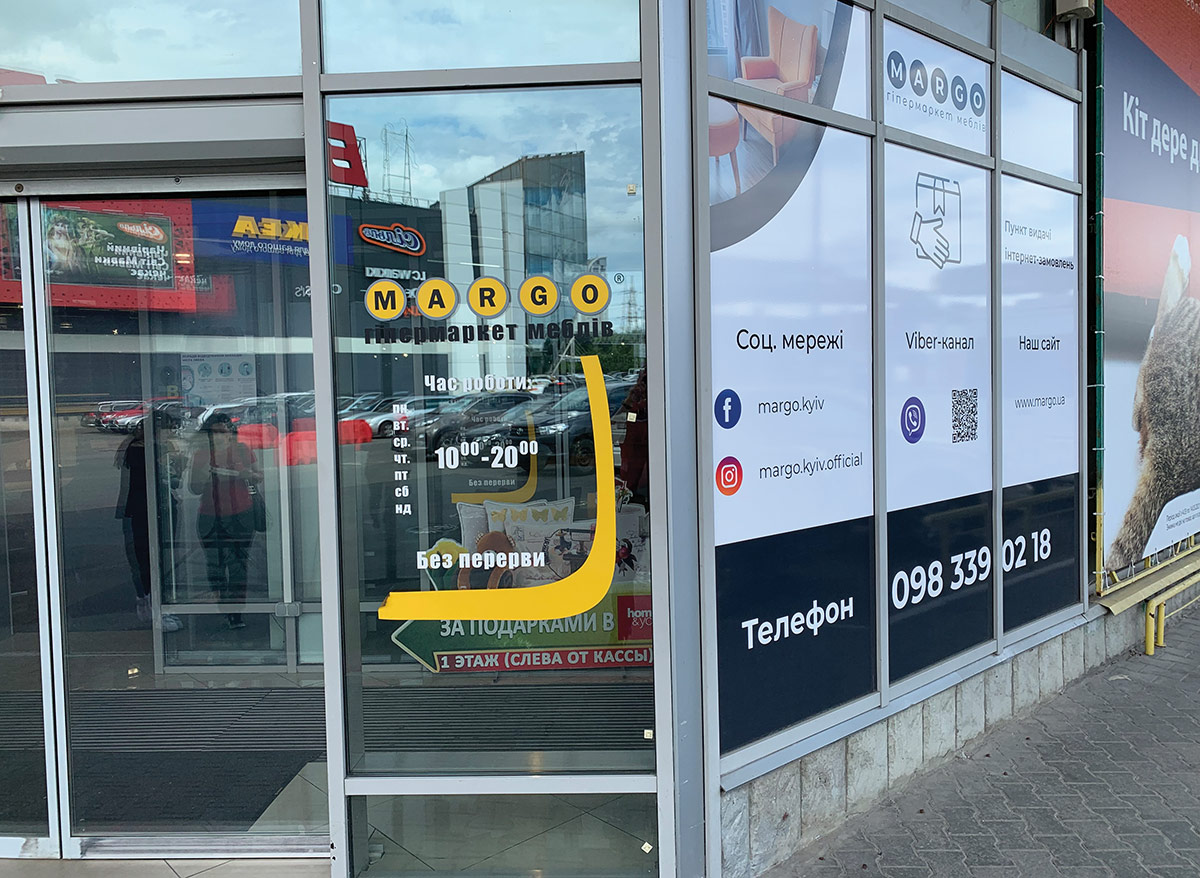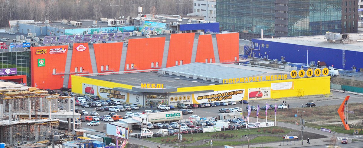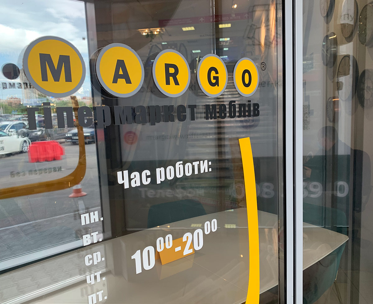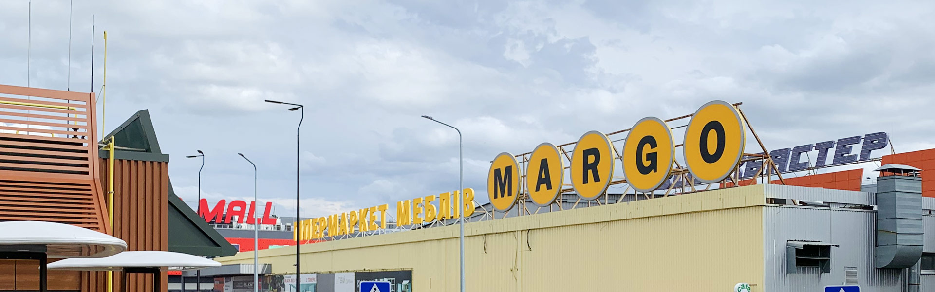 Мультибрендовий гіпермаркет меблів "MARGO". Тут покупець може здійснити покупку заощаджуючи час та кошти, скористатися послугами консультантів, побачити меблі в інтер'єрі, придбати додатково аксесуари та декор. Гіпермаркет містить на території такі відділи: м'які меблі; спальні; житлові кімнати; дитячі меблі; стіл та стілець; матраци; живі квіти, декор; текстиль: постільні комплекти, подушки, скатертини, рушники, гардини; сад та город, пластикові та плетені меблі; шафи-купе, вітальні.