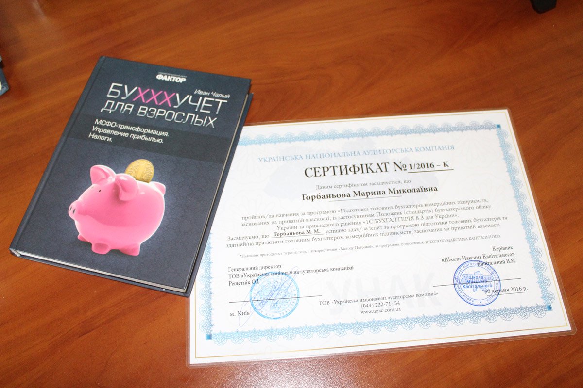 Розроблений дизайн сертифіката виконаний у строгому, класичному стилі та відповідає основним вимогам Замовника до цієї роботи.