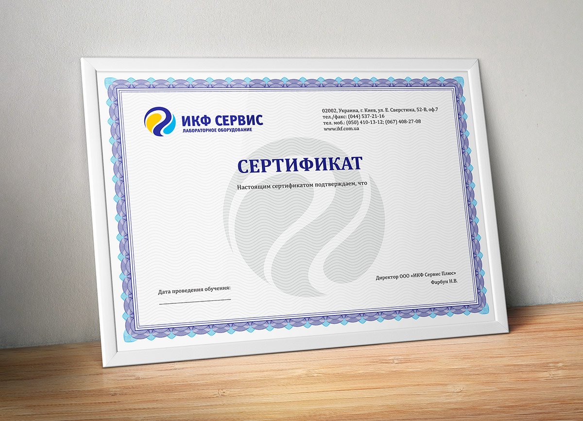 Розробка дизайну сертифікату для компанії «ІКФ Сервіс» (Україна).
