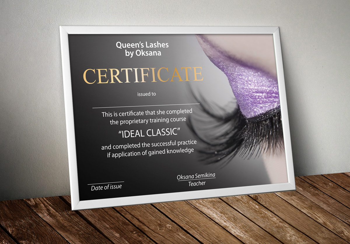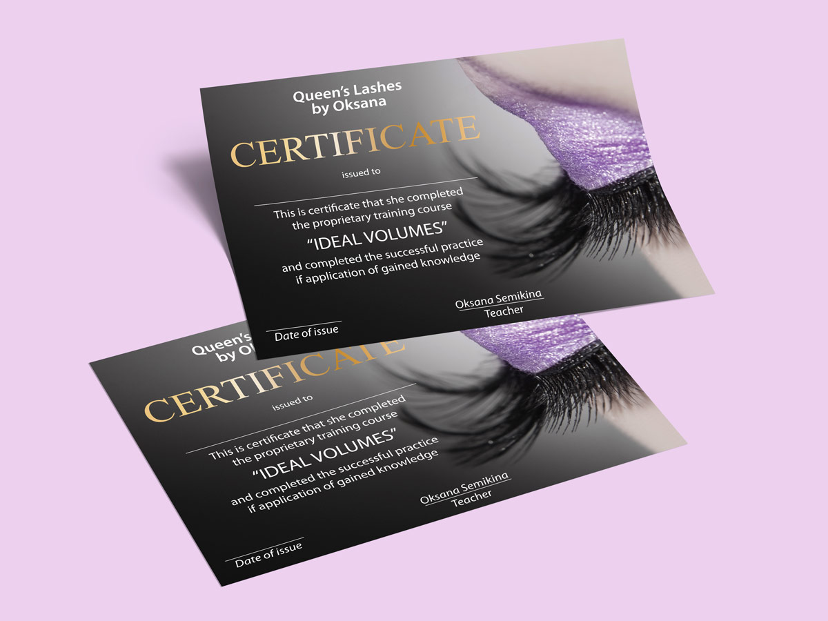 Розробка дизайну сертифікату для студії з нарощування вій Queen Lashes (Україна, м.Київ).