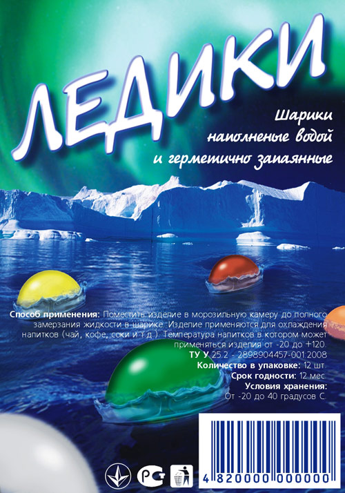 Упаковка для кульок, заповнених водою та герметично запаяних.