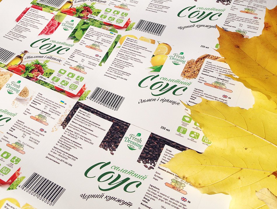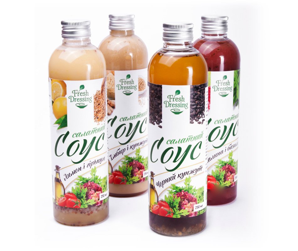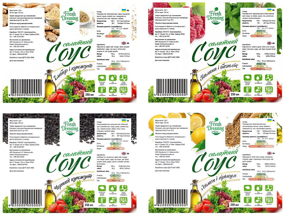 Дизайн етикеток виконаний у єдиному стилі – де верхня частина відображає інгредієнти кожного соусу, а нижня частина – у загальному стилі.