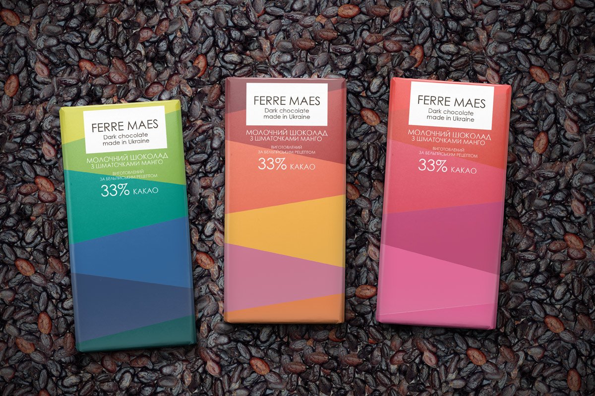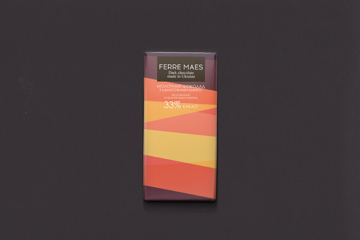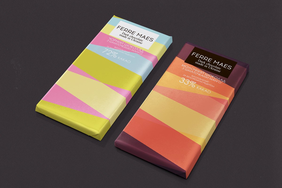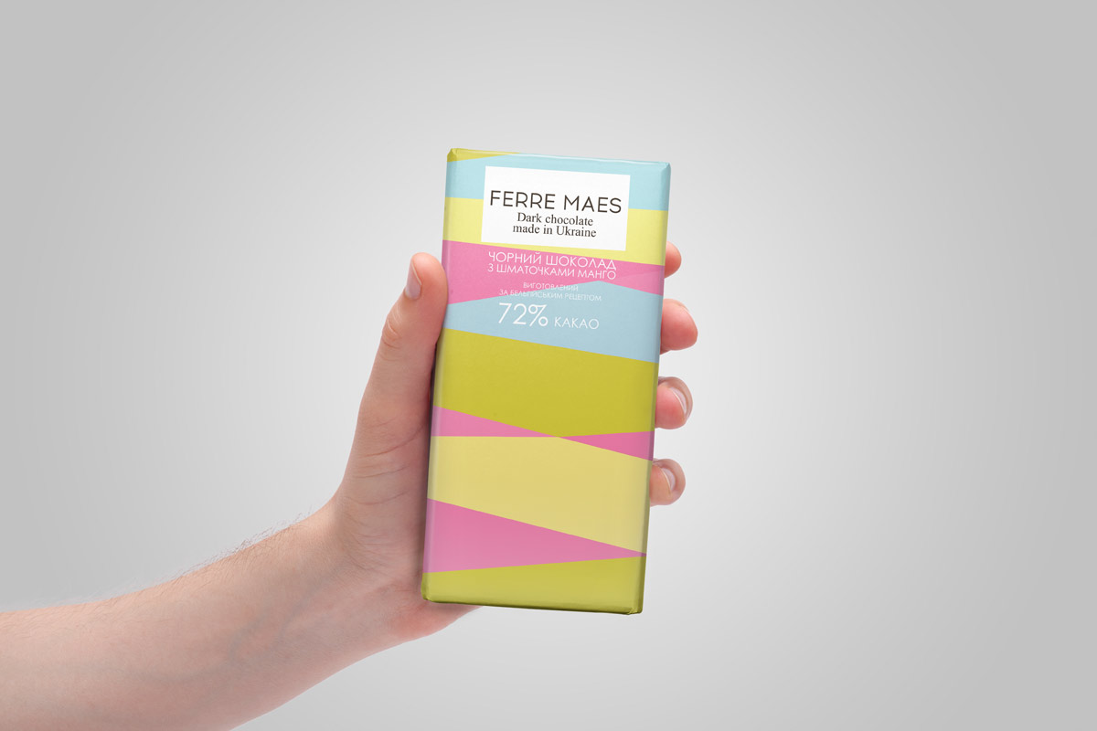 Розробка дизайну упаковки для всієї лінійки молочного шоколаду ТМ "FERRE MAES". Упаковка класичного шоколаду була розроблена в яскравому, сучасному та життєрадісному стилі. Створений дизайн сприятиме зміцненню бренду на міжнародному рівні, відбиваючи бездоганну якість продукту.