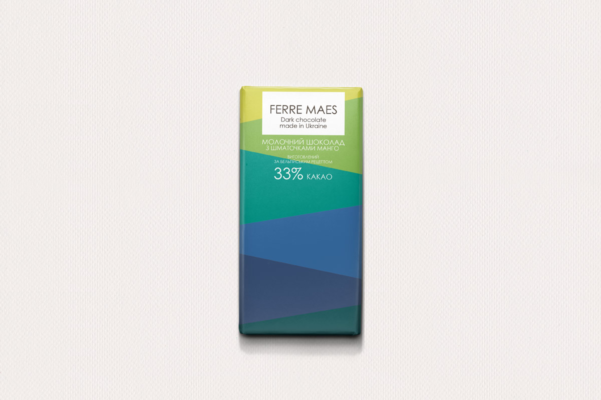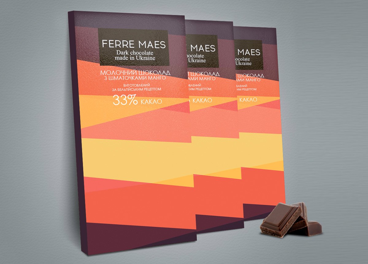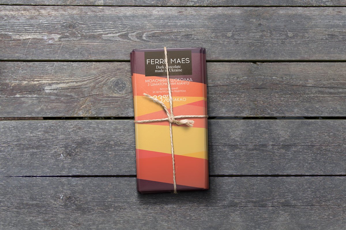 Розробка дизайну упаковки для всієї лінійки молочного шоколаду ТМ "FERRE MAES". Упаковка класичного шоколаду була розроблена в яскравому, сучасному та життєрадісному стилі. Створений дизайн сприятиме зміцненню бренду на міжнародному рівні, відбиваючи бездоганну якість продукту.