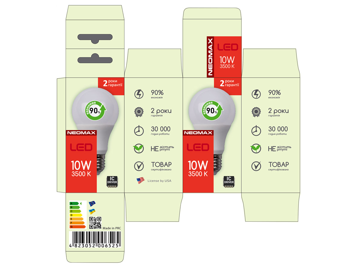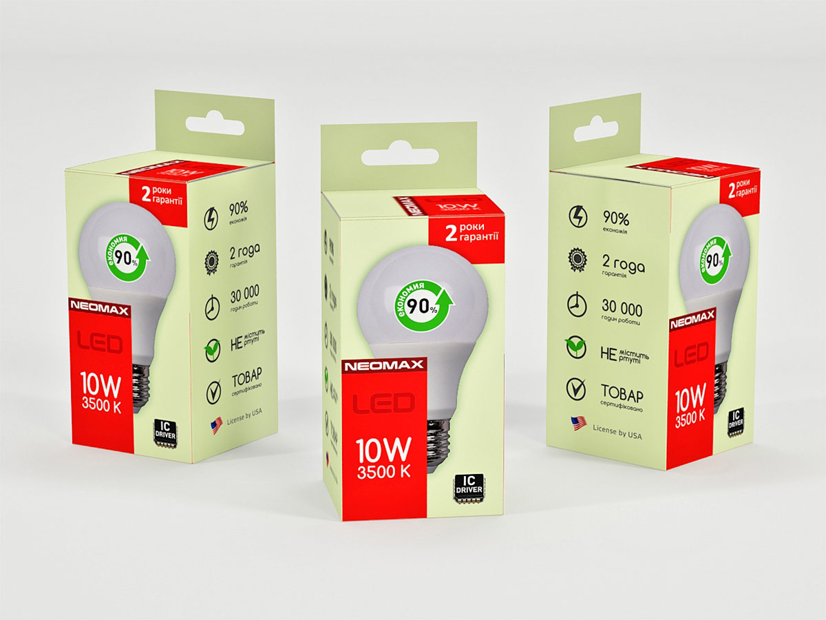 Економічність, енергоефективність, природна кольоропередача та екологічність LED-ламп під брендом “NEOMAX” дозволяють заощадити, дарують затишок та забезпечують безпеку в будинку. При використанні на виробництві, LED-лампи підвищують рентабельність бізнесу та роблять робочий процес більш комфортним та ефективним, знижуючи стомлюваність персоналу. На сьогоднішній день це найкраще рішення для освітлення будь-яких приміщень.