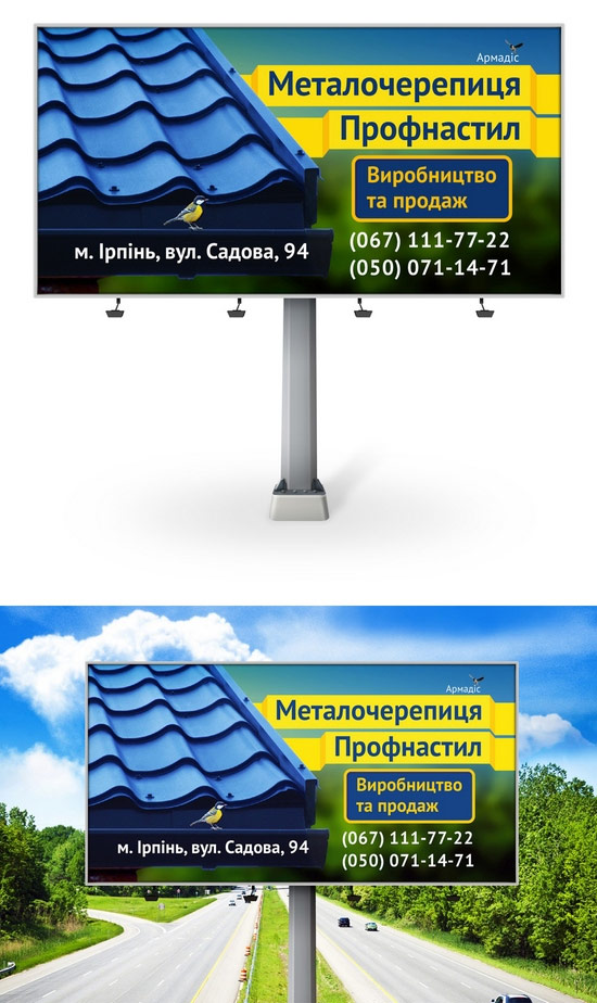 Макет рекламы стройтельных материалов - металлочерепица, профнастил.