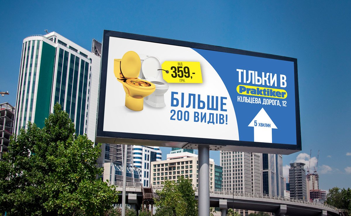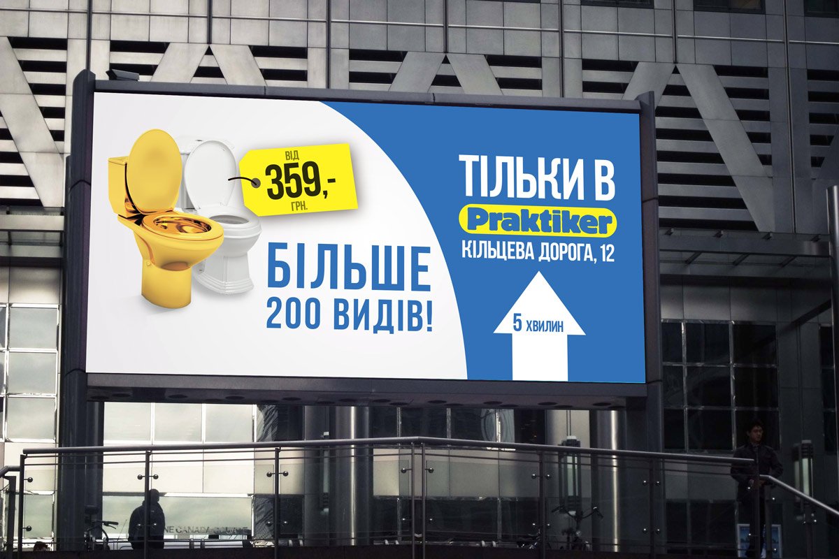 Розробка дизайну рекламного щита (білборд, бігборд, борд, billboard) для PRAKTIKER - це міжнародна мережа будівельних гіпермаркетів, яка має свої представництва у 9 країнах. Нині в Україні налічується 4 магазини: у Києві, Броварах, Миколаєві та Дніпропетровську.