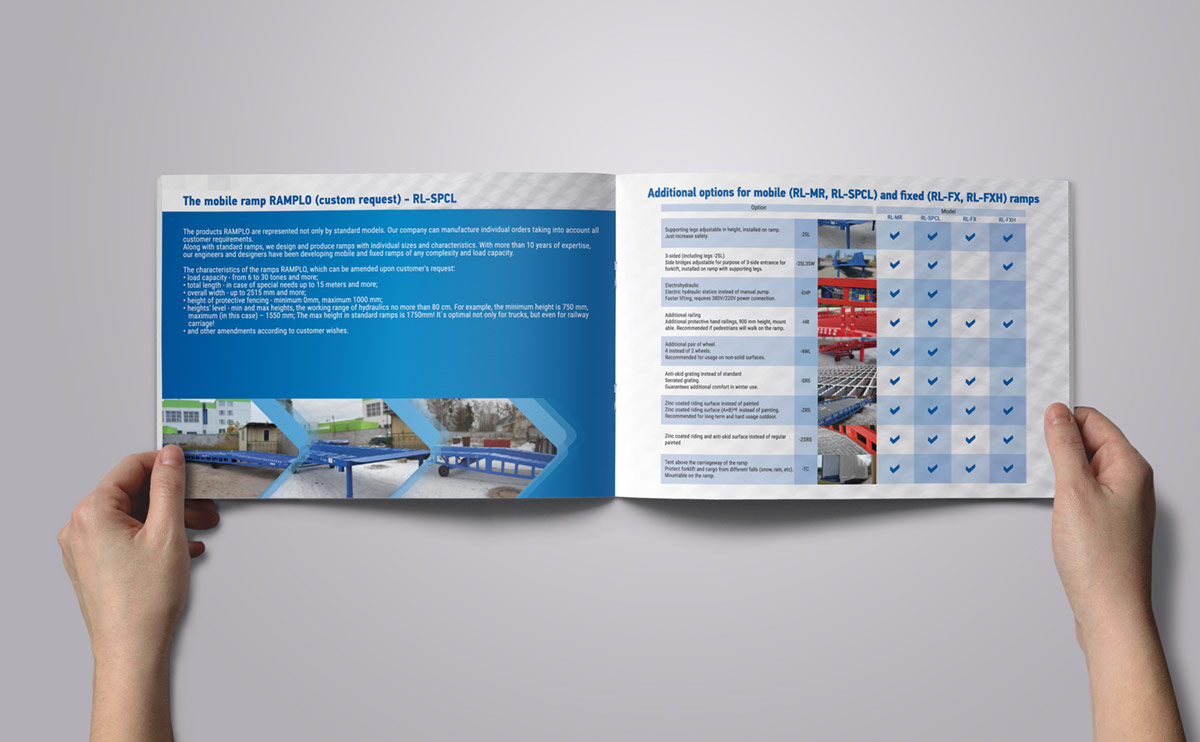 Розробка дизайну та оформлення презентації для мобільних рамп RAMPLO - це спеціальний пристрій для навантаження/розвантаження. Цей продукт дозволяє суттєво прискорити процеси розвантаження/навантаження вантажів.