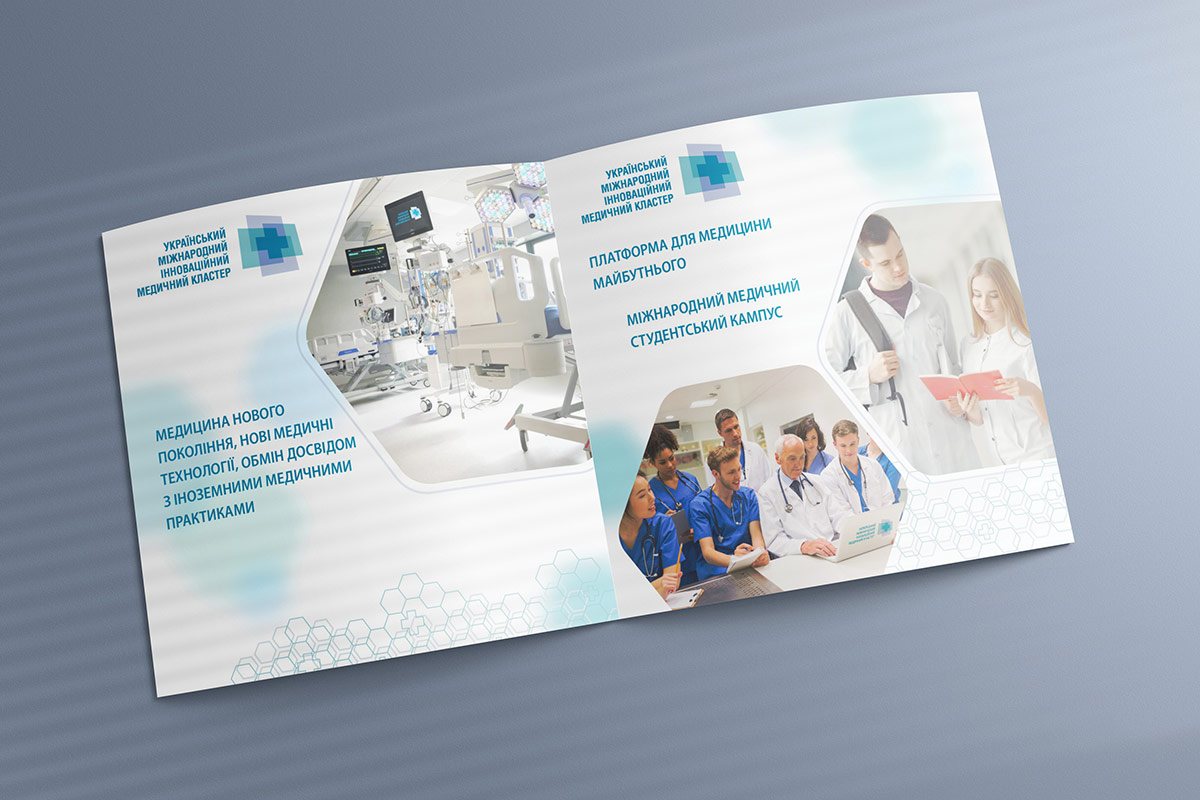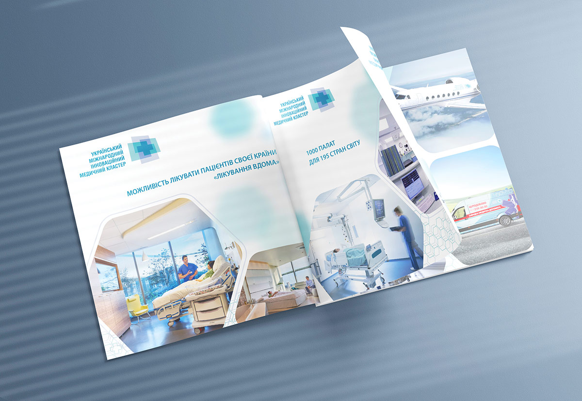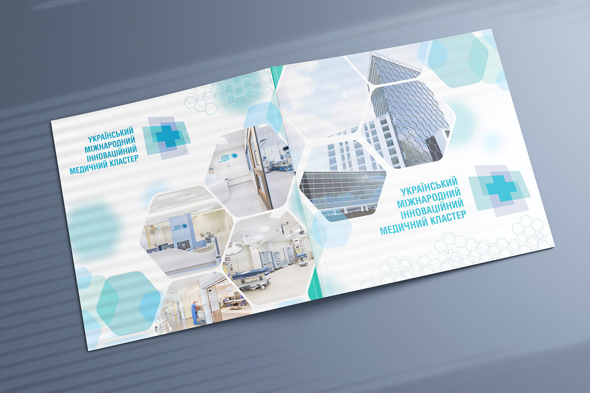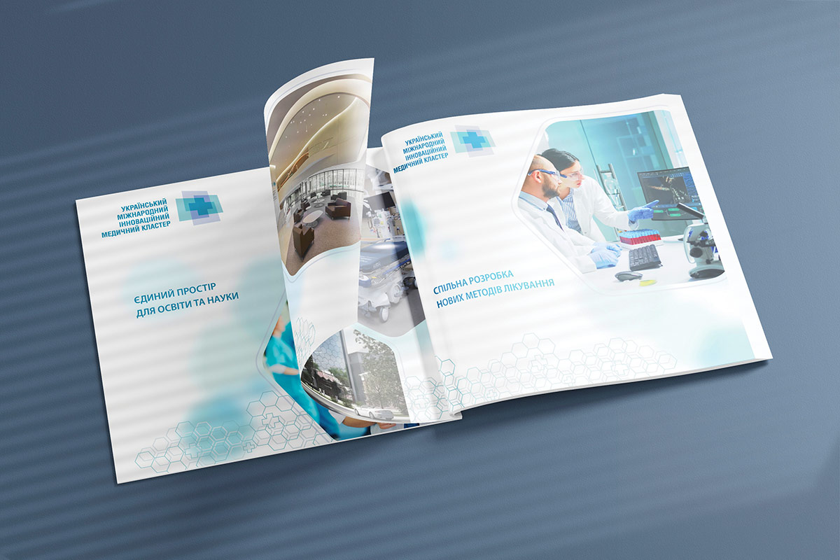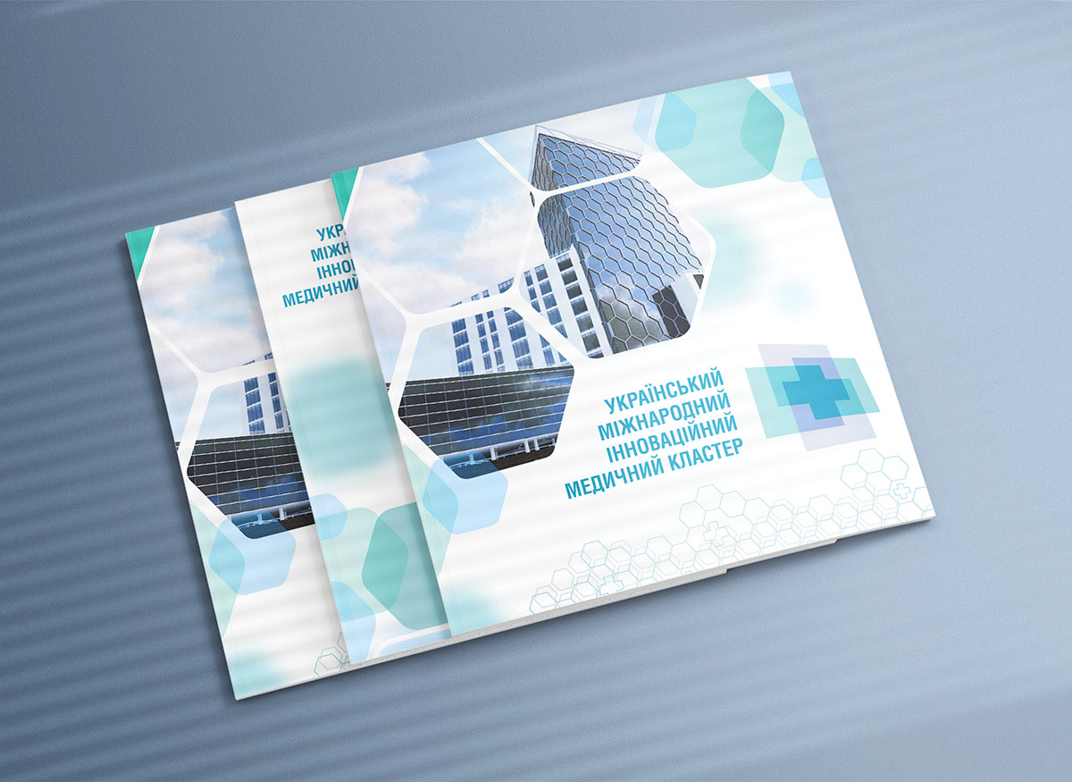 Розробка дизайну та верстка презентації для проекту “UKRAINIAN INTERNATIONAL INNOVATION MEDICAL CLASTER” була виконана з урахуванням розробленого у нашій студії логотипу та фірмового стилю, який детально описаний у бренд буку.