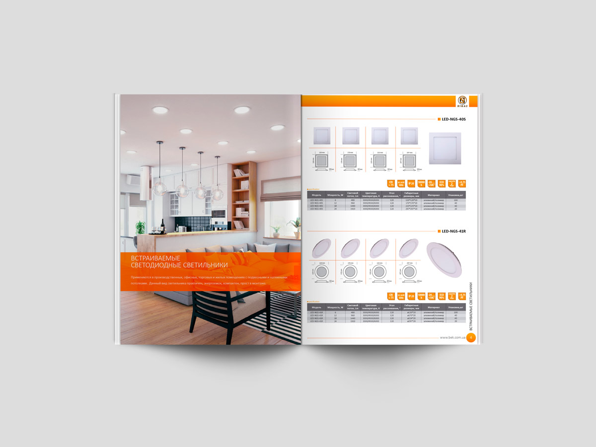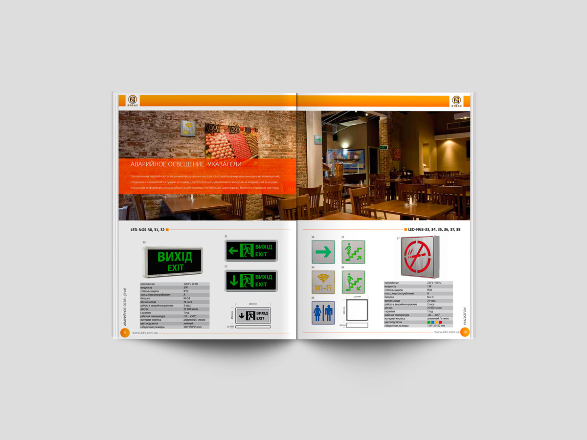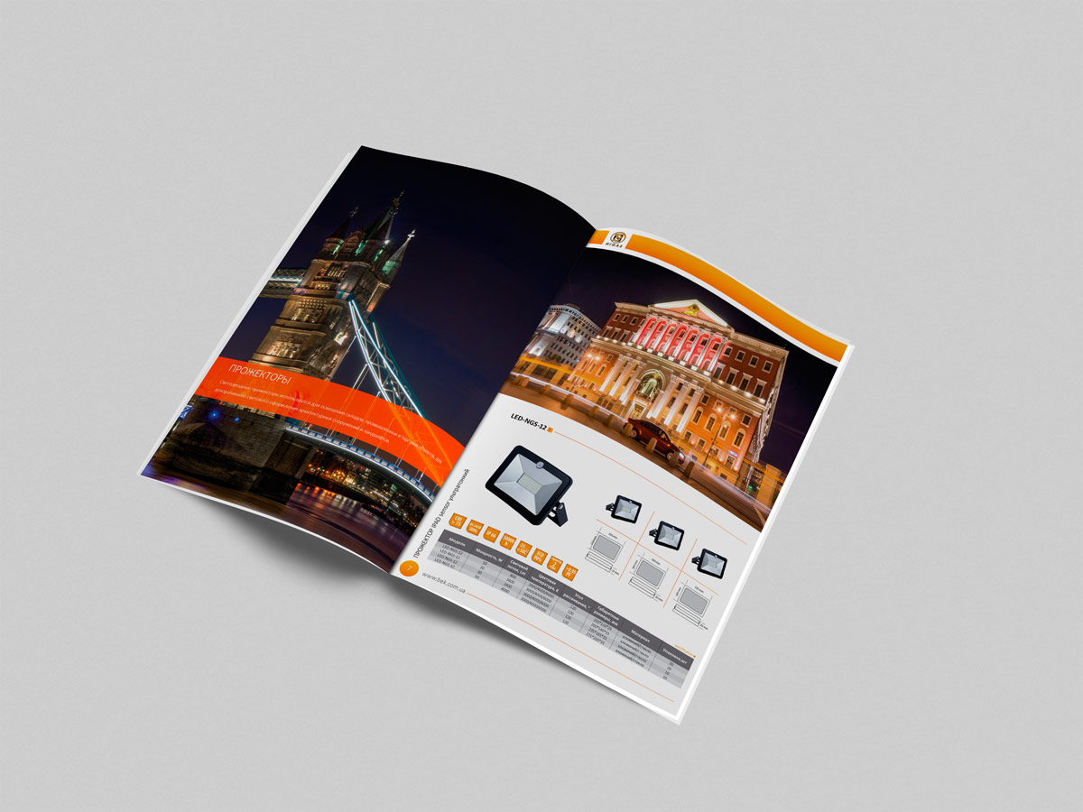 Розробка дизайну та верстка буклету для ТМ "NIGAS" - економічна, надійна та екологічно чиста альтернатива лампам розжарювання. Основу асортименту бренду складають прості, базові моделі світлодіодних ламп і світильників, створені на основі надійних, перевірених часом рішень в галузі енергозберігаючого освітлення. Вся світлотехніка відрізняється помірною ціною при високих параметрах надійності та довговічності, і орієнтована на прагматичних споживачів, які воліють купувати якісні товари, не сплачуючи за додаткові опції. Всі лампи і світильники оснащені IC-драйверами, що захищають від перепадів напруги в діапазоні 198-242В і усувають пульсацію світла, а також конденсаторами, що перешкоджають перешкодам, які забезпечують коректність спільної роботи світлотехніки та інших електронних приладів.