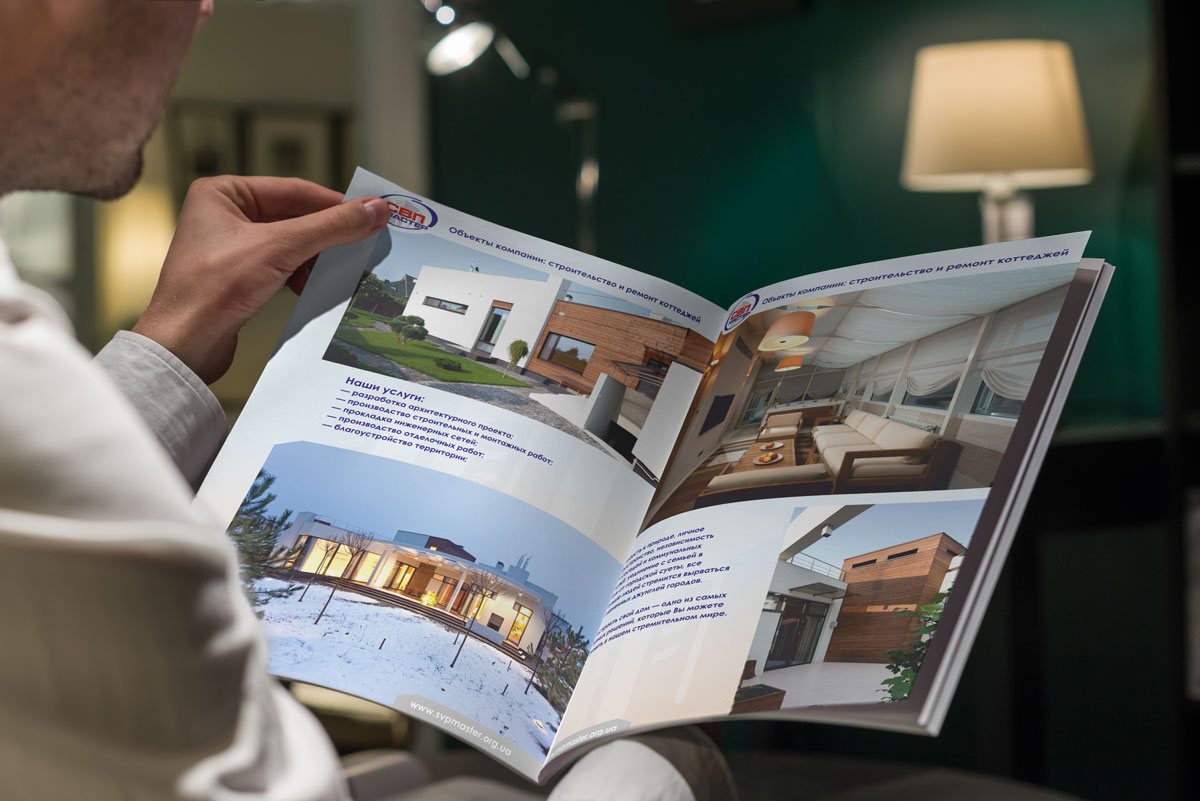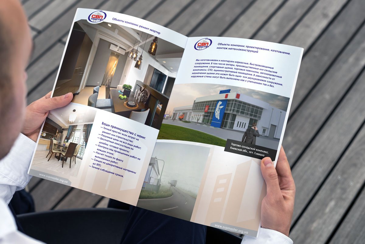 Розробка дизайну та верстка буклету для компанії "СВП Майстер" (Київ, Україна). Починаючи з 2003 року будівельна компанія радує своїх клієнтів якісним ремонтом квартир під ключ, офісних приміщень, будівництвом будинків та котеджів, а також іншими ремонтними та будівельними роботами.