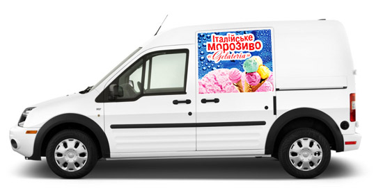 Брендування автотранспорту Київ. Макет реклами для поклейки авто плівками Oracal (оракал)
