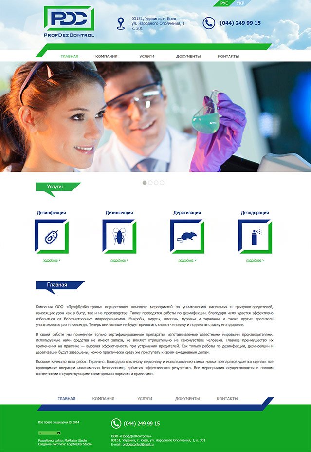 У нашу студію звернулися за створенням логотипу для компанії “ProfDezControl” – компанія, яка здійснює комплекс заходів щодо знищення комах та гризунів-шкідників, які завдають шкоди як у побуті, так і на виробництві. Також компанія проводить роботи з дезінфекції, завдяки чому вдається ефективно позбутися хвороботворних мікроорганізмів.