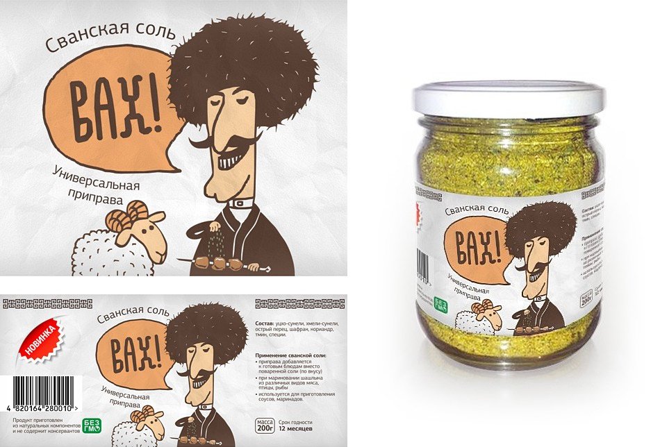 Розроблений дизайн етикетки передає специфіку Кавказу та виконаний у веселій мультиплікаційній манері – розроблено персонаж, а назва написана унікально-відмальованим рукописним шрифтом.