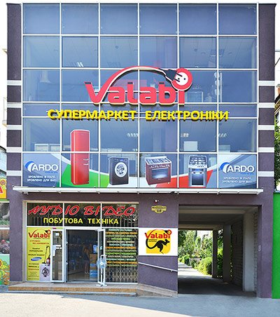 Супермаркет «Valabi» (Україна, м. Чернівці) надає широкий вибір побутової техніки та електроніки - різні моделі холодильників, пилососів, пральних машин, телевізорів, посудомийних машин, прасок, електроплит, витяжок та багатьох інших товарів . Також магазин пропонує величезний асортимент аудіотехніки, відеотехніки, фототехніки, мобільних телефонів та комп'ютерної техніки.