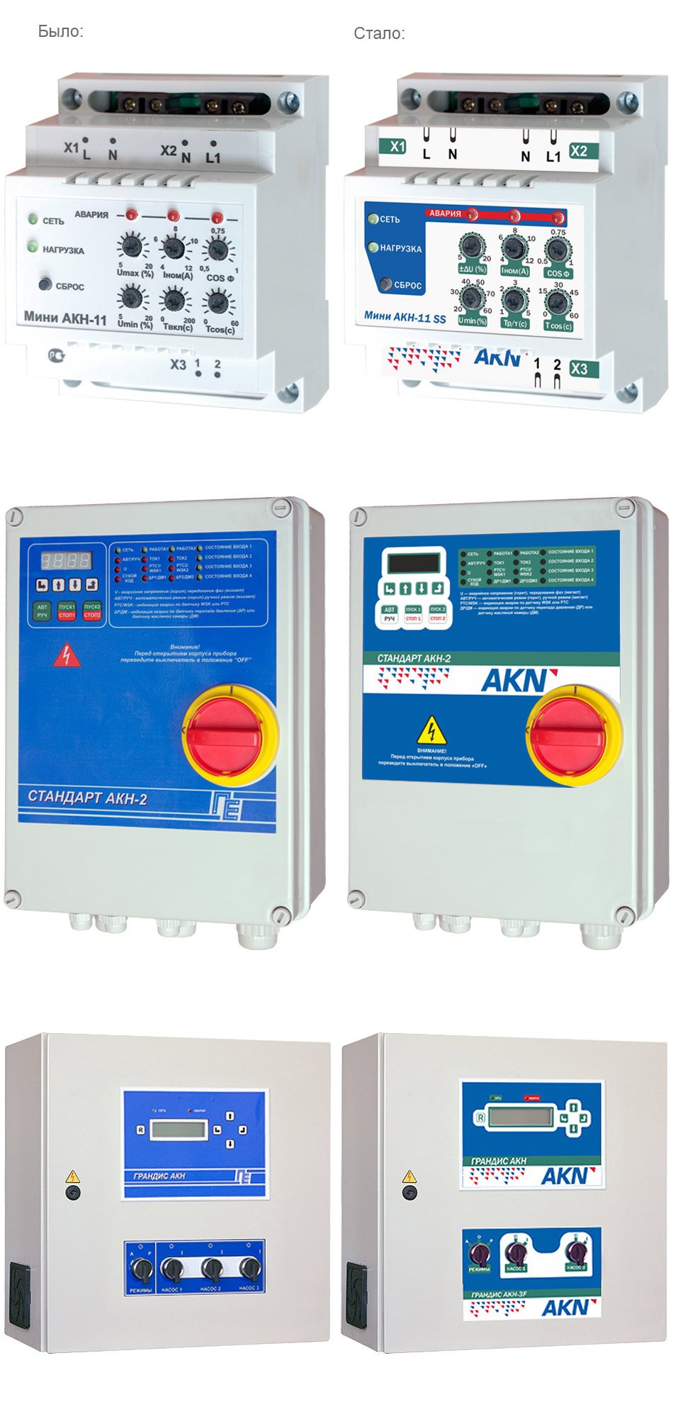 Підприємство пропонує сучасні пристрої керування насосами для різних галузей промисловості та сільського господарства. Насосна автоматика серії AKN оснащена сучасними спеціалізованими мікропроцесорними контролерами, що забезпечують широкі функціональні можливості та різноманітність різних алгоритмів роботи керованого насосного обладнання, забезпечує надійне керування та комплексний захист насосів від аварійних режимів, тим самим значно продовжуючи термін експлуатації насосного обладнання.