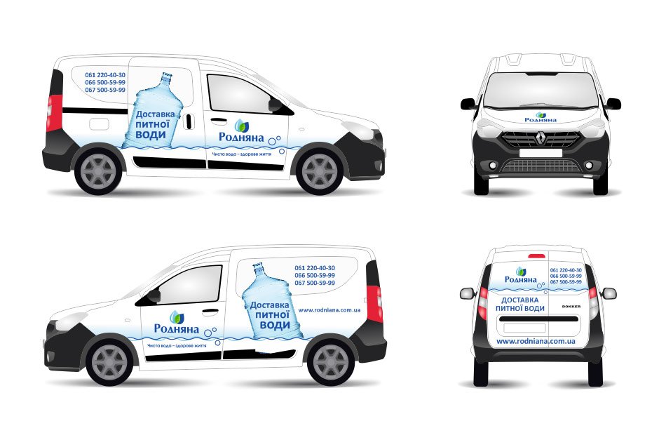 Усього за пару місяців нам розробили унікальну назву (яку ми вже зареєстрували), логотип, слоган, фірмовий стиль, дизайн етикетки та оформлення автомобіля.