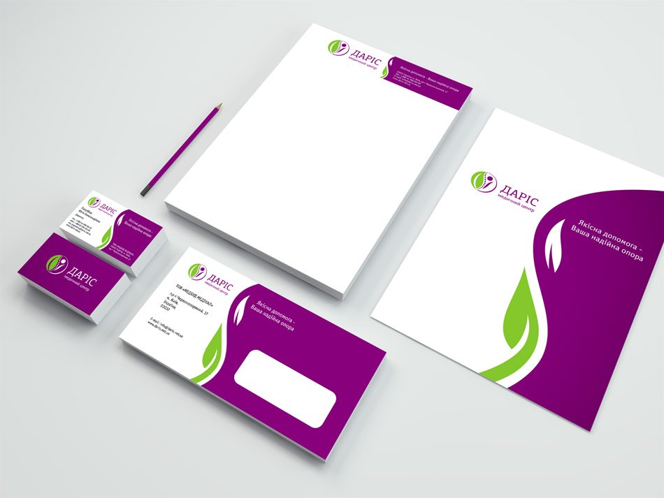 Протягом місяця було виконано завдання щодо створення та узгодження бренду буку медичного центру. Особливу увагу Замовник просив приділити опису логотипу та його нанесенню на різні площини, створенню фірмового стилю, з яким відвідувач клініки зустрінеться на вивісці, в інтер'єрі клініки, кабінетних табличках, одязі персоналу та стелі недалеко від входу до клініки.