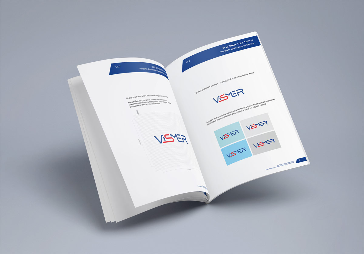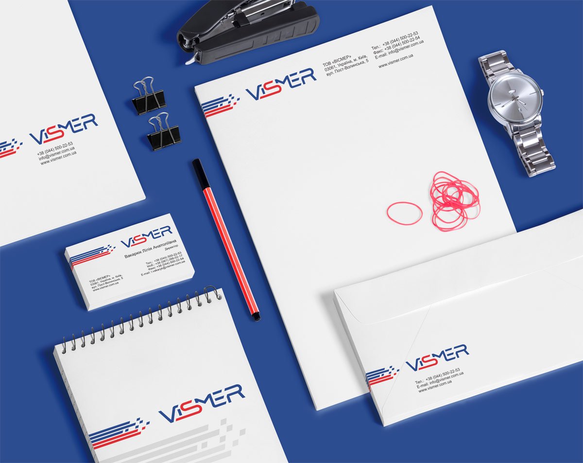Шрифтове написання назви логотипу “VISMER” розроблено дизайнерами нашої студії. Літери стилізовані під інженерні комунікації (трубопроводи та електричне проведення), для відображення специфіки діяльності компанії.