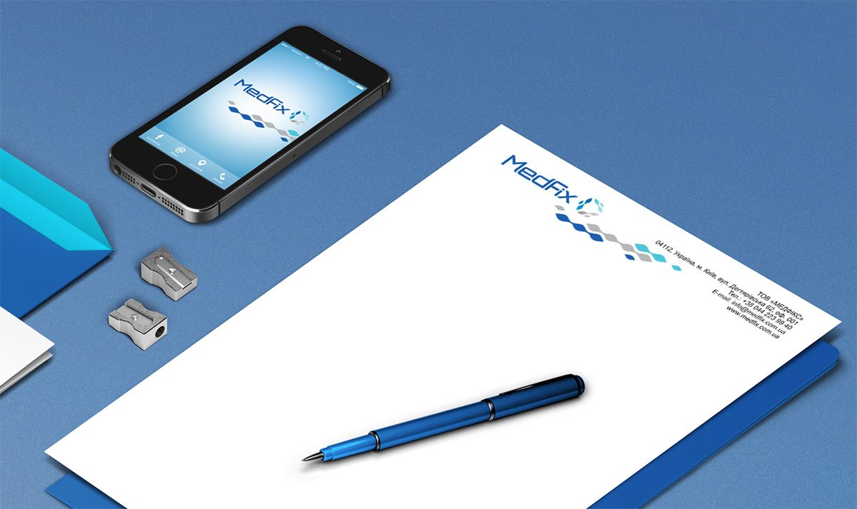 Колірне рішення виконане в синьому кольорі та його відтінках, для відображення медичної спрямованості діяльності компанії.