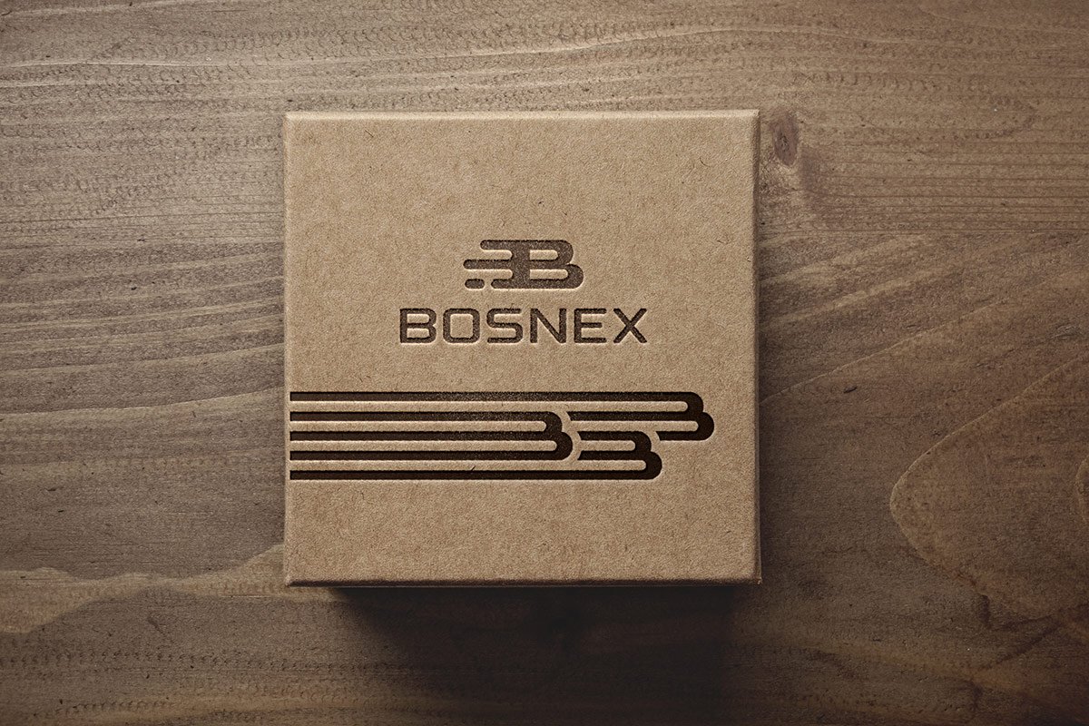 Шрифтове написання назви “BOSNEX” у логотипі розроблено дизайнерами нашої студії та адаптовано під загальний стиль бренду.