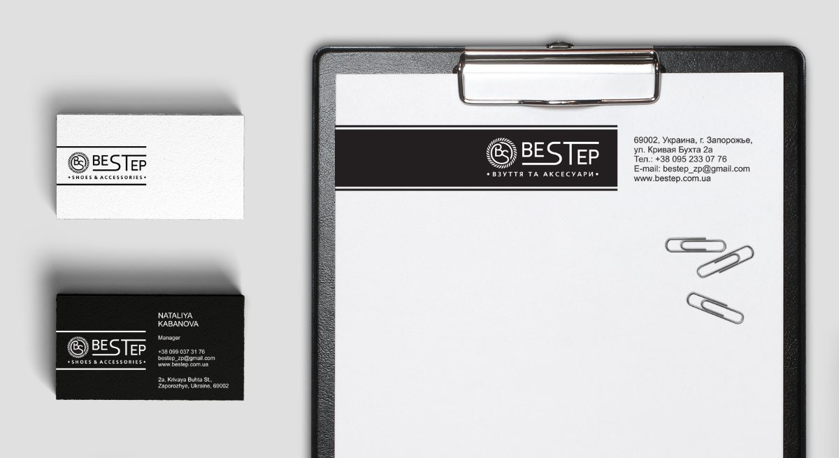 Чорний колір логотипу відображає строгість і чудово поєднується з усіма іншими кольорами. Шрифтове написання назви “BESTEP” у логотипі розроблено дизайнерами нашої студії та адаптовано під загальний стиль бренду.