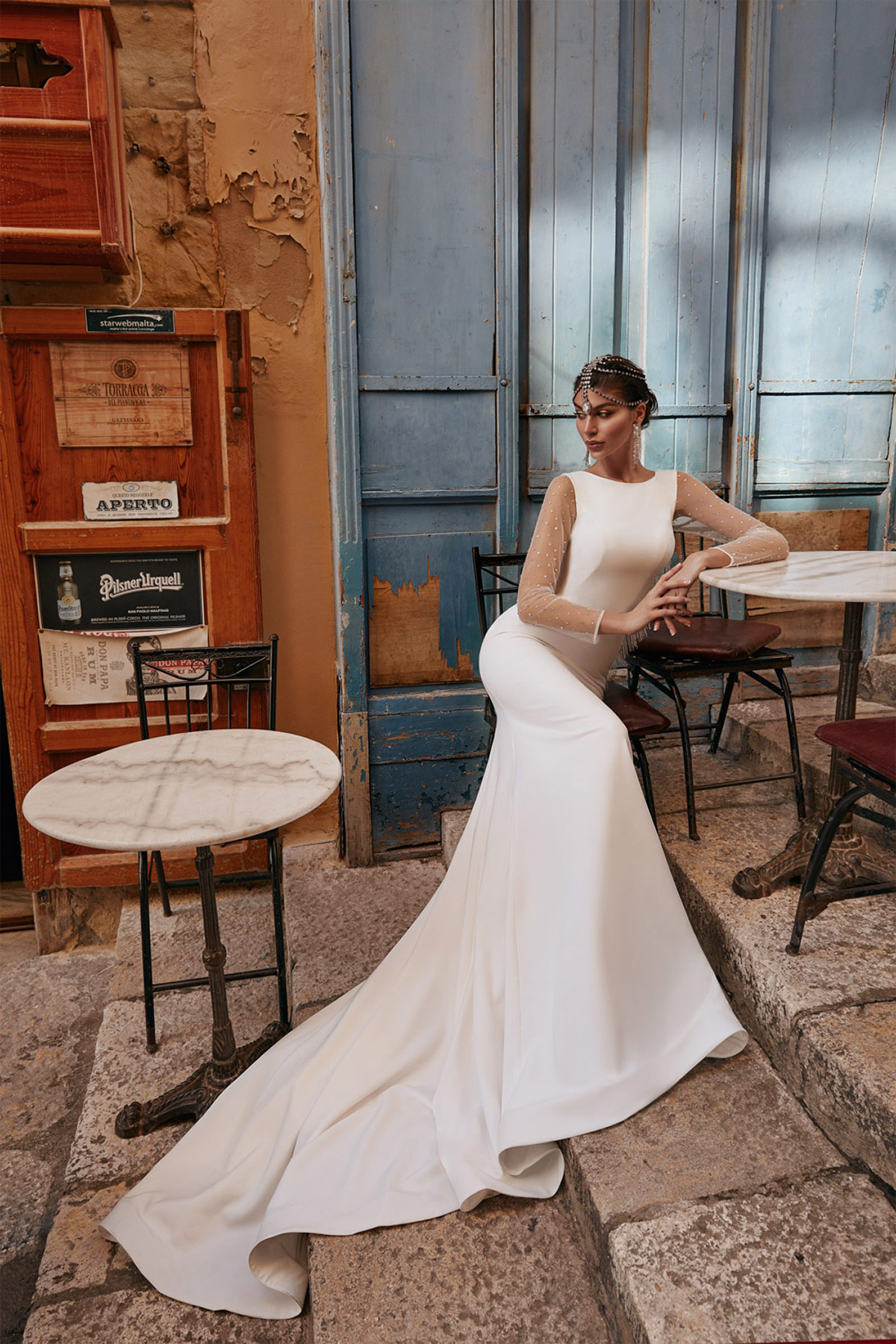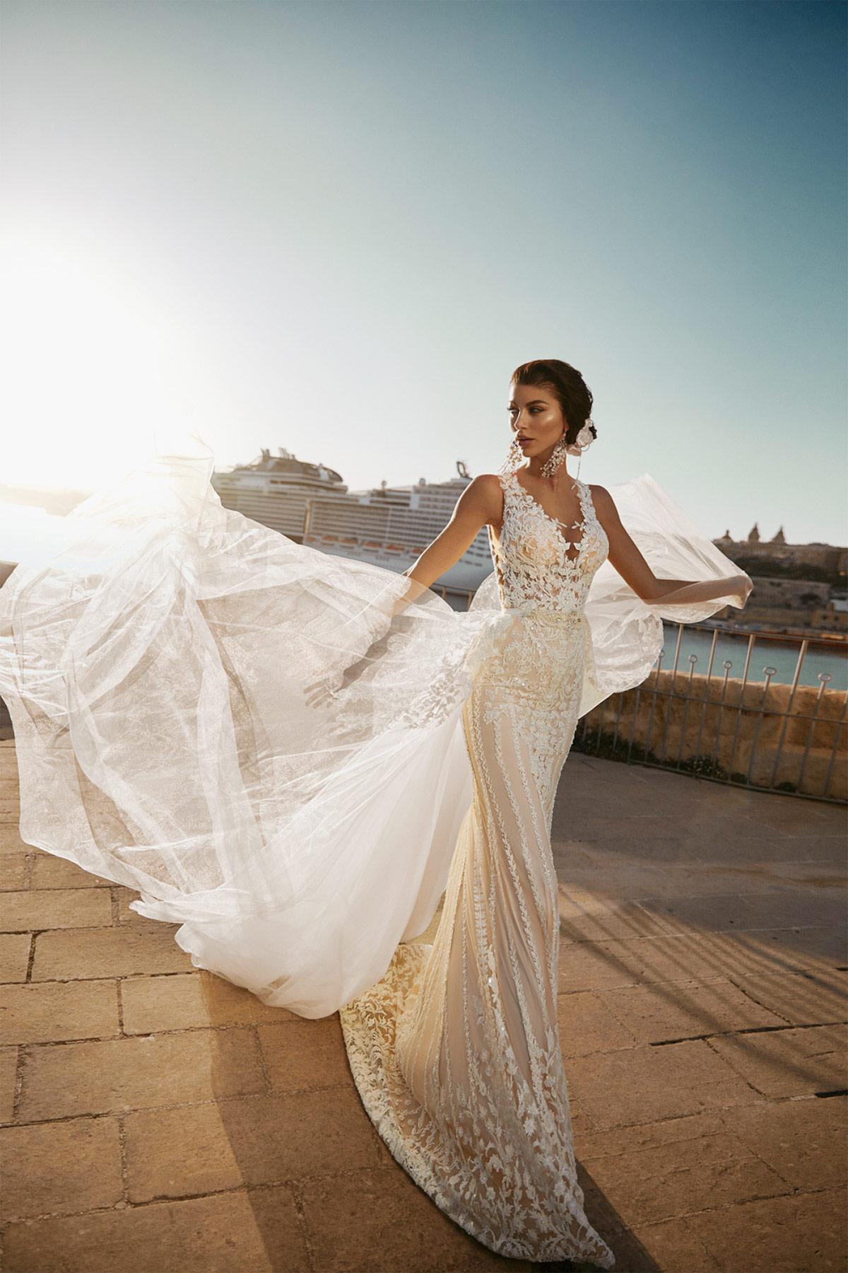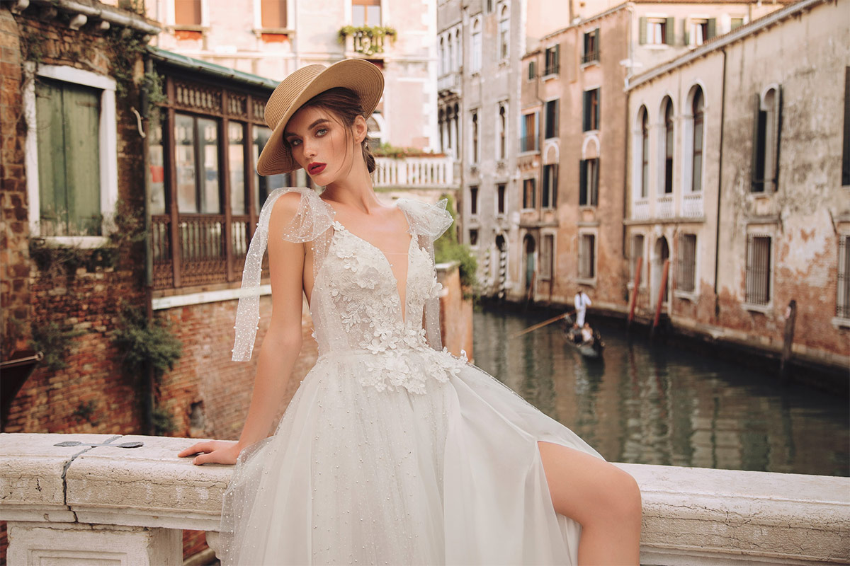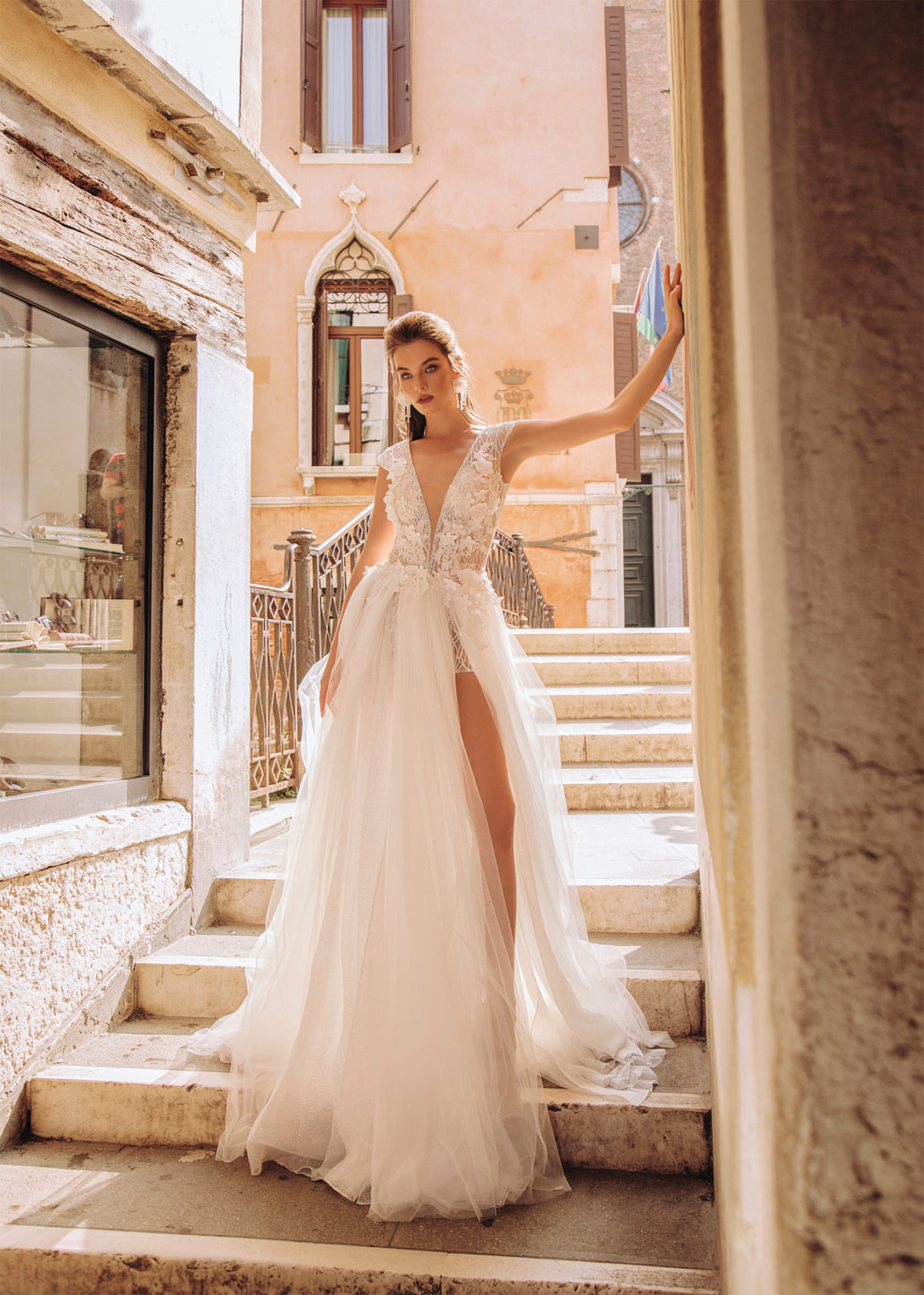 Індивідуальний стиль, повний жіночної елегантності, у виконанні з тканин преміального рівня набуває неповторної розкоші, яка також відрізняє кожну весільну сукню цього бренду.