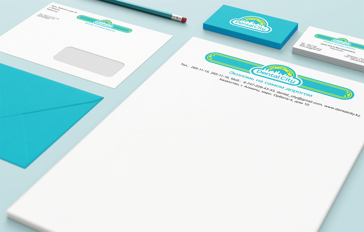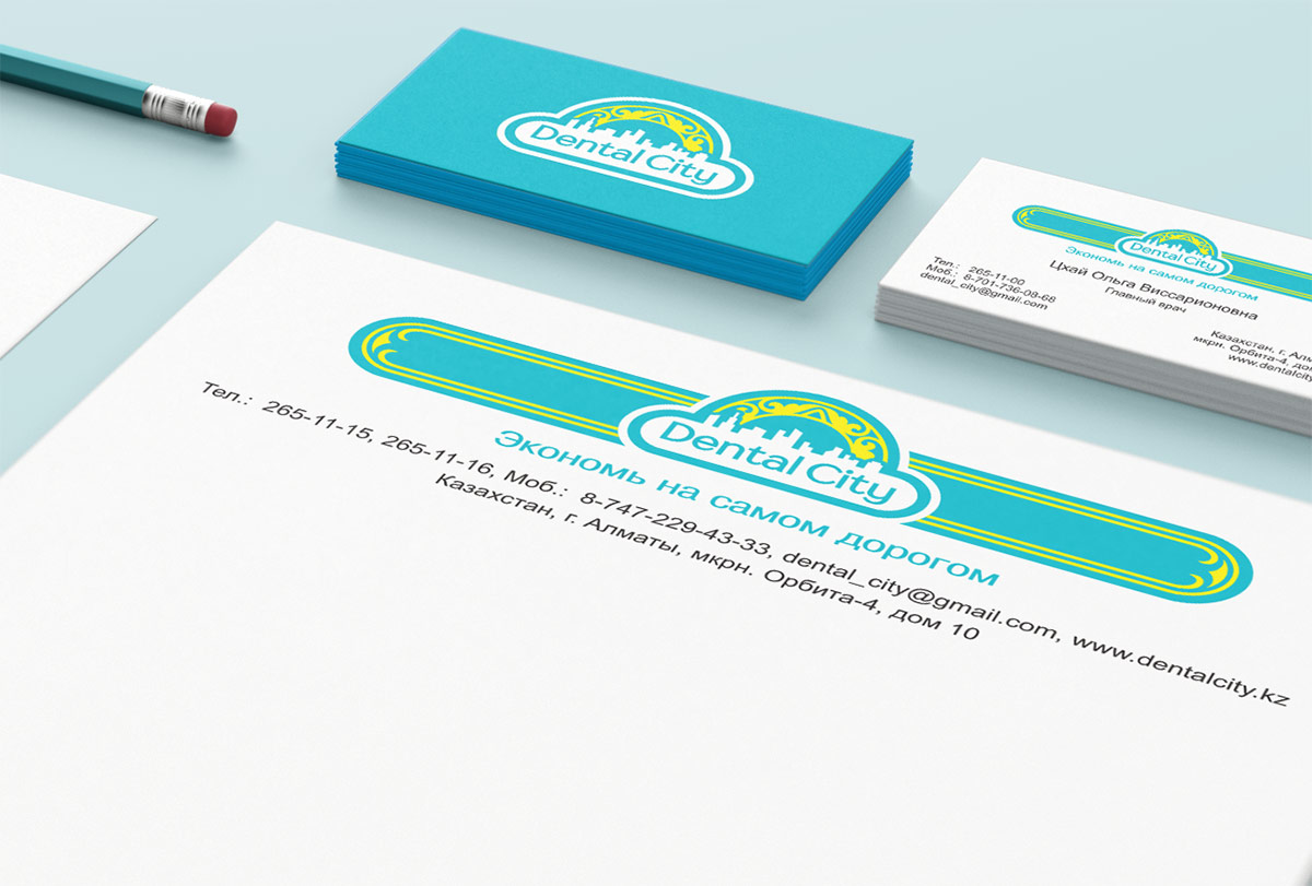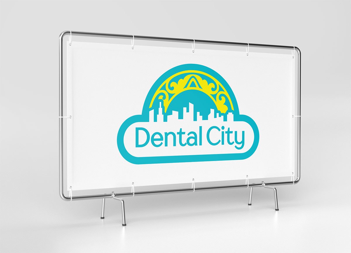 Шрифтове написання назви “Dental City” у логотипі розроблено дизайнерами нашої студії та адаптовано під загальний стиль бренду.