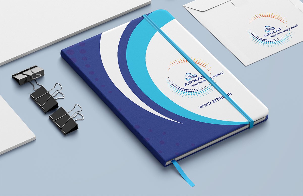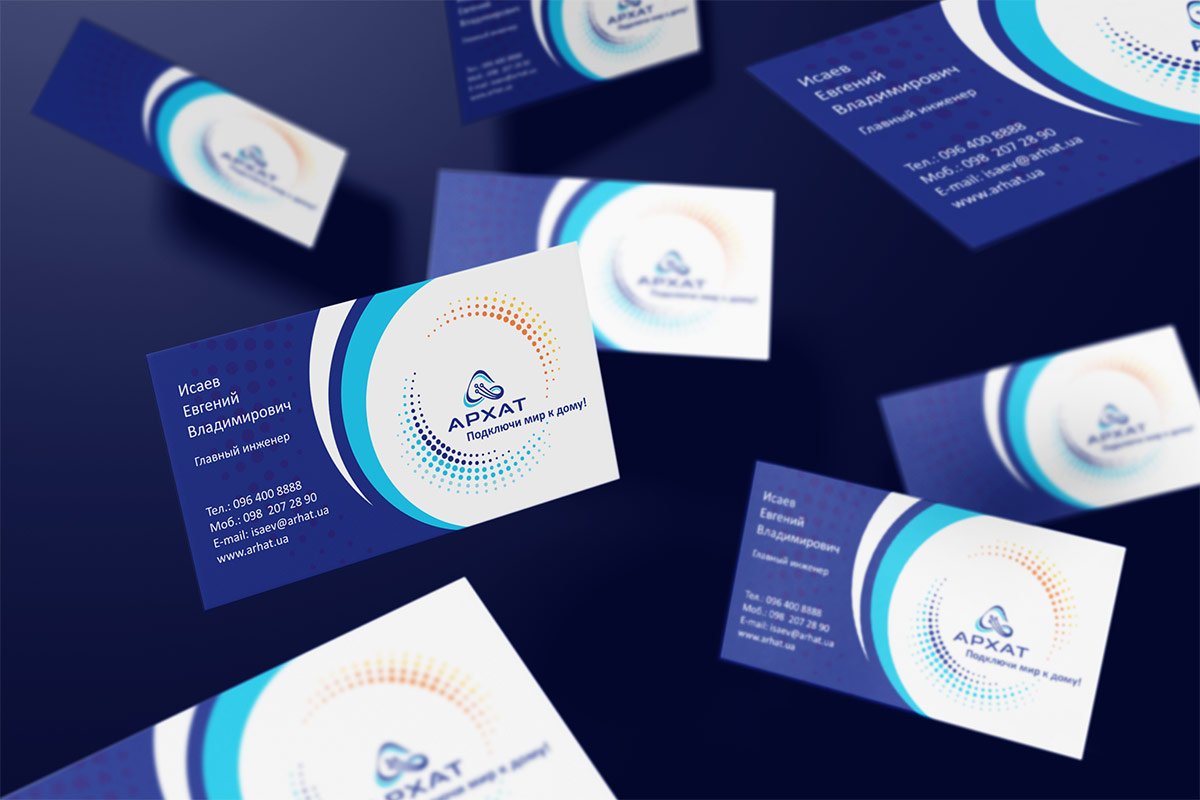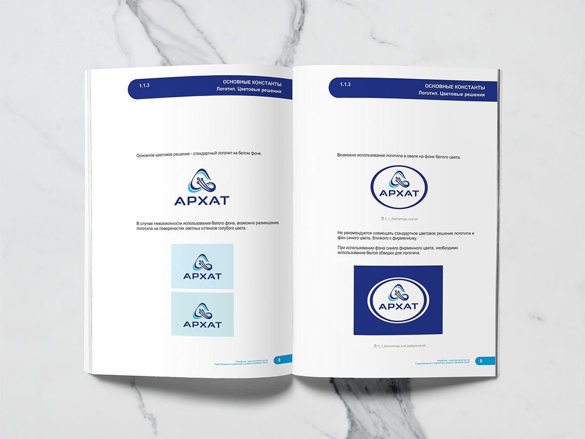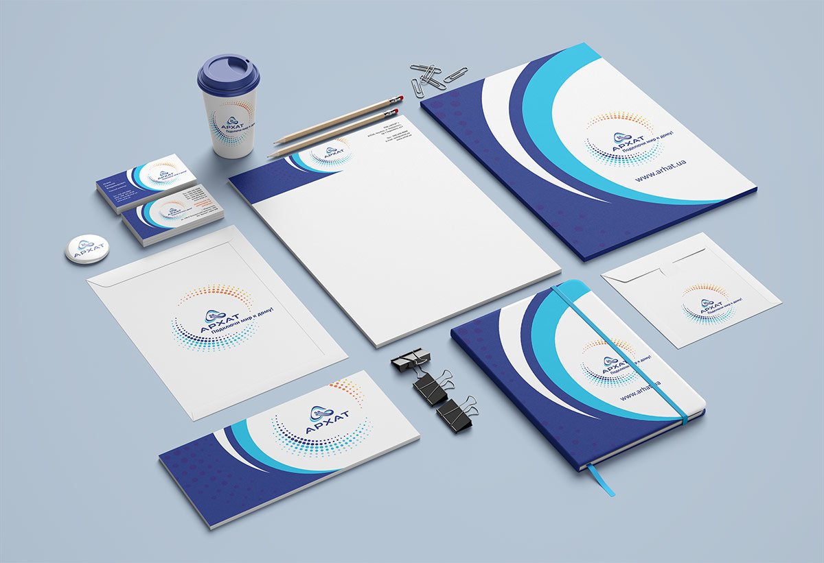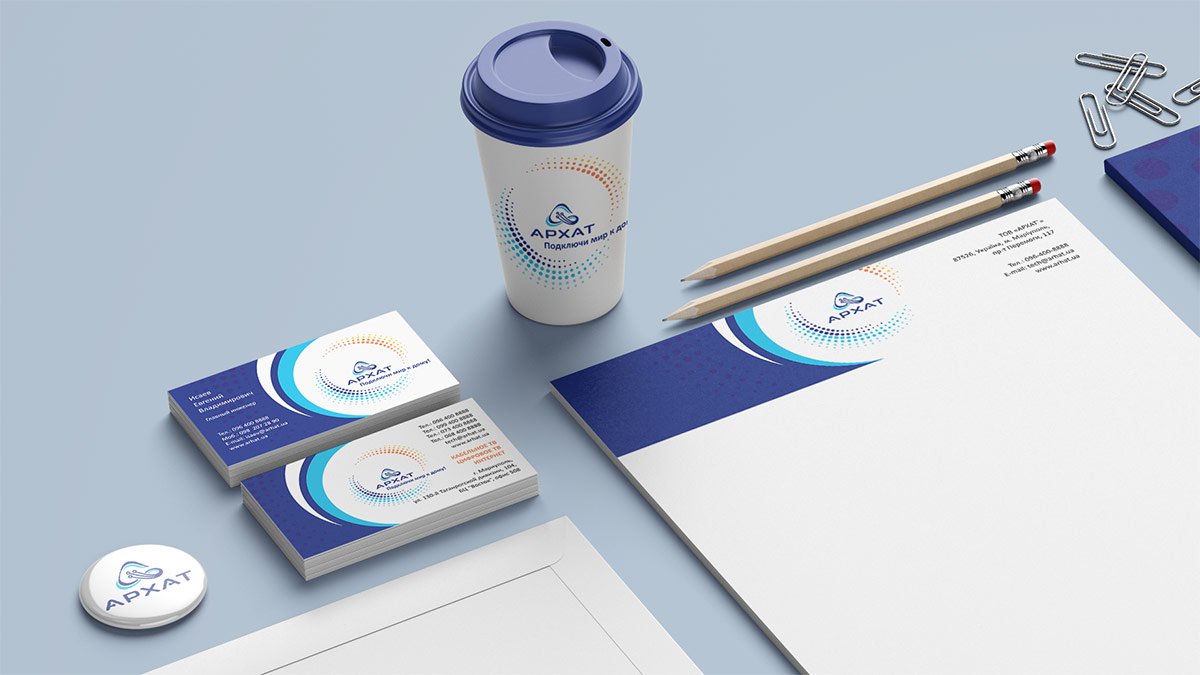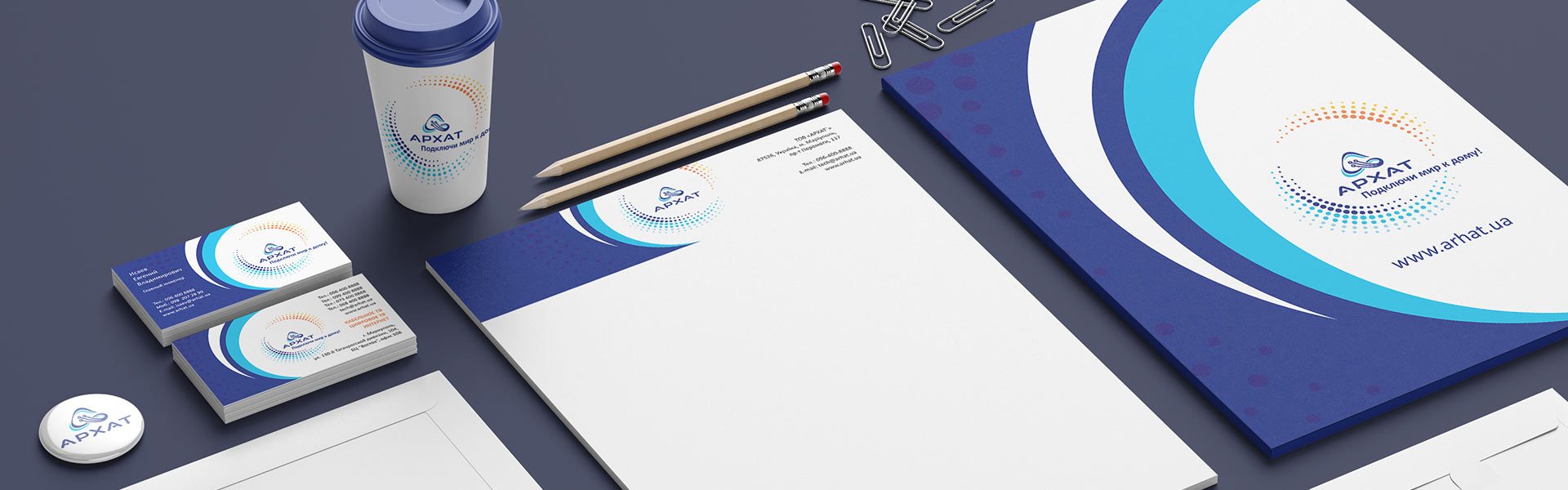 Шрифтове написання назви "АРХАТ" у логотипі розроблено дизайнерами нашої студії та адаптовано під загальний стиль бренду.