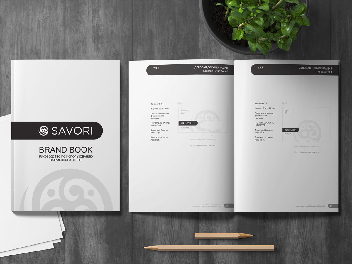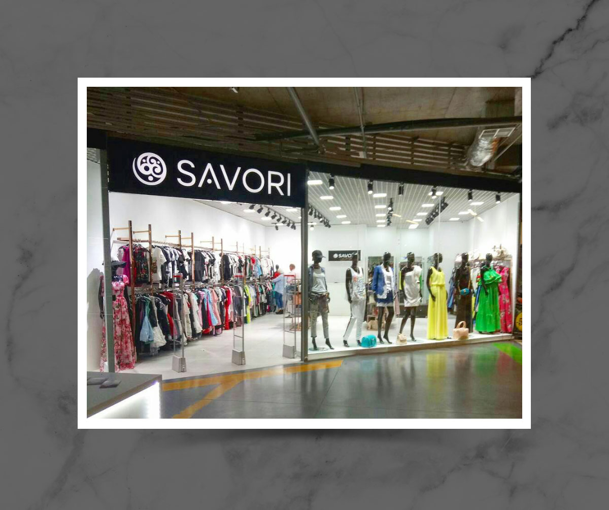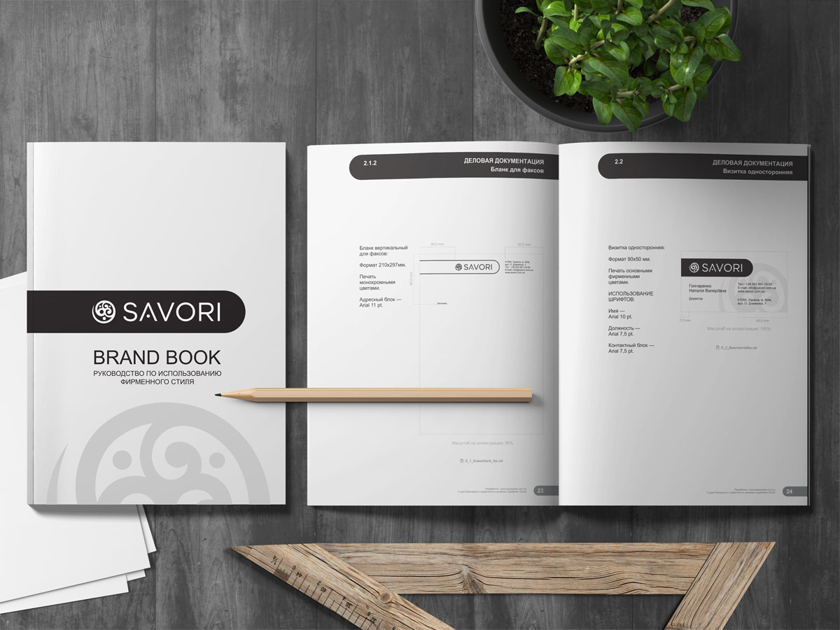 Чорний колір логотипу відображає строгість і чудово поєднується з усіма іншими кольорами. Шрифтове написання назви “SAVORI” у логотипі розроблено дизайнерами нашої студії та адаптовано під загальний стиль бренду.
