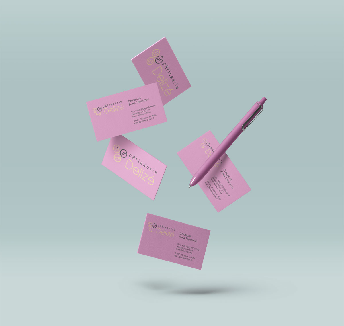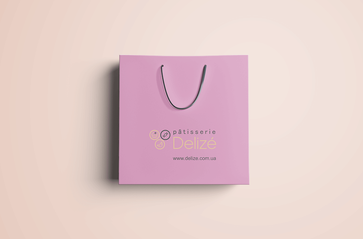Шрифтове написання назви у логотипі “Delizé pâtisserie” розроблено дизайнерами нашої студії та адаптовано під загальний стиль бренду.