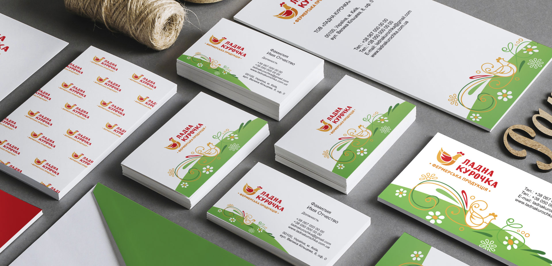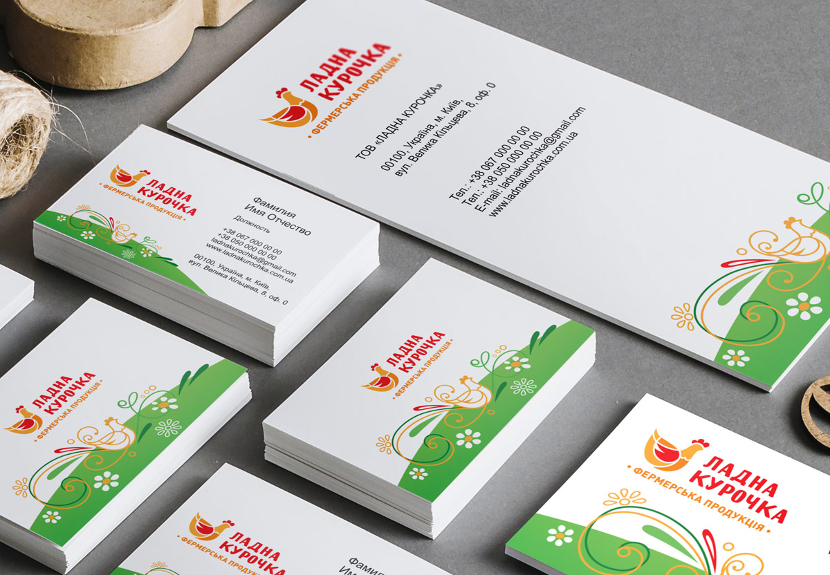 Особливу увагу хочеться приділити фірмовому стилю, який відображає натуральність бренду. В рамках замовлення розроблено стандартний набір документів: візитні картки, конверт, фірмовий бланк. Розроблений фірмовий стиль, що складається з елементів яскравого літнього лужка, відображає природність і високу якість фермерської продукції. Основною відмінністю стилю є запам'ятовуваність.