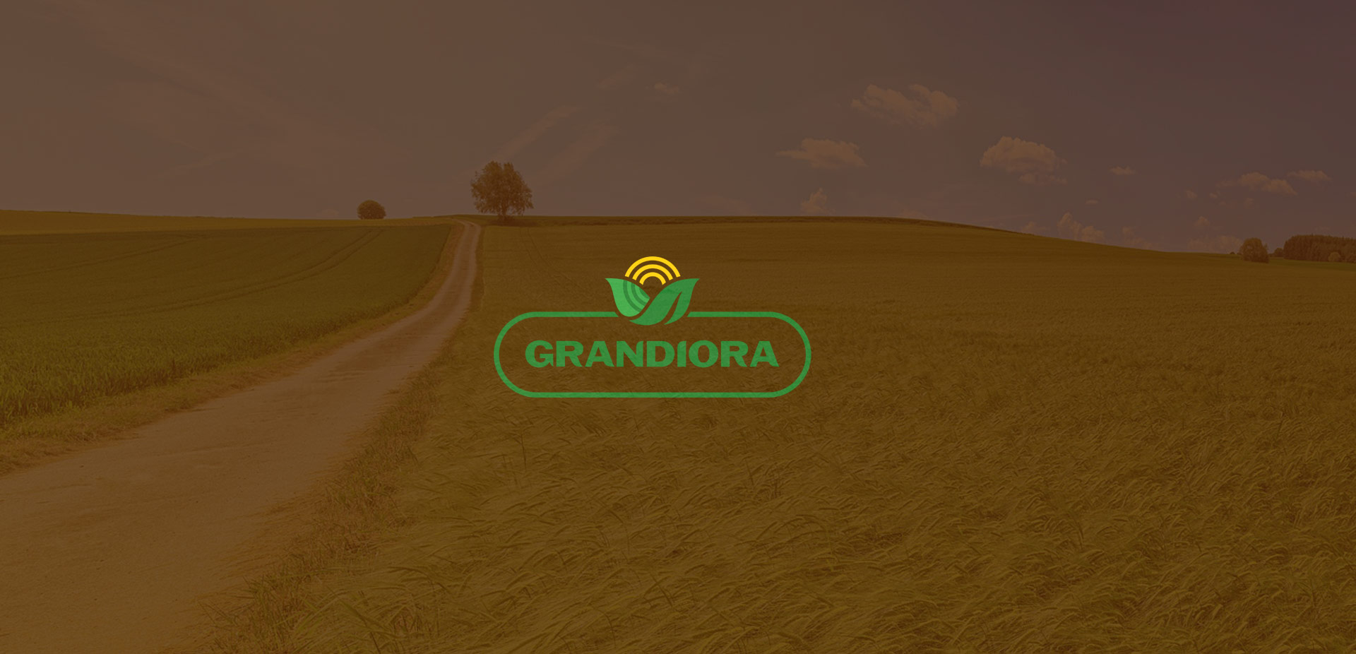 Логотип складається з назви торгової марки та знака у вигляді сонця та листочків. Шрифтове написання назви у логотипі “GRANDIORA” розроблено дизайнерами нашої студії та адаптовано під загальний стиль бренду.