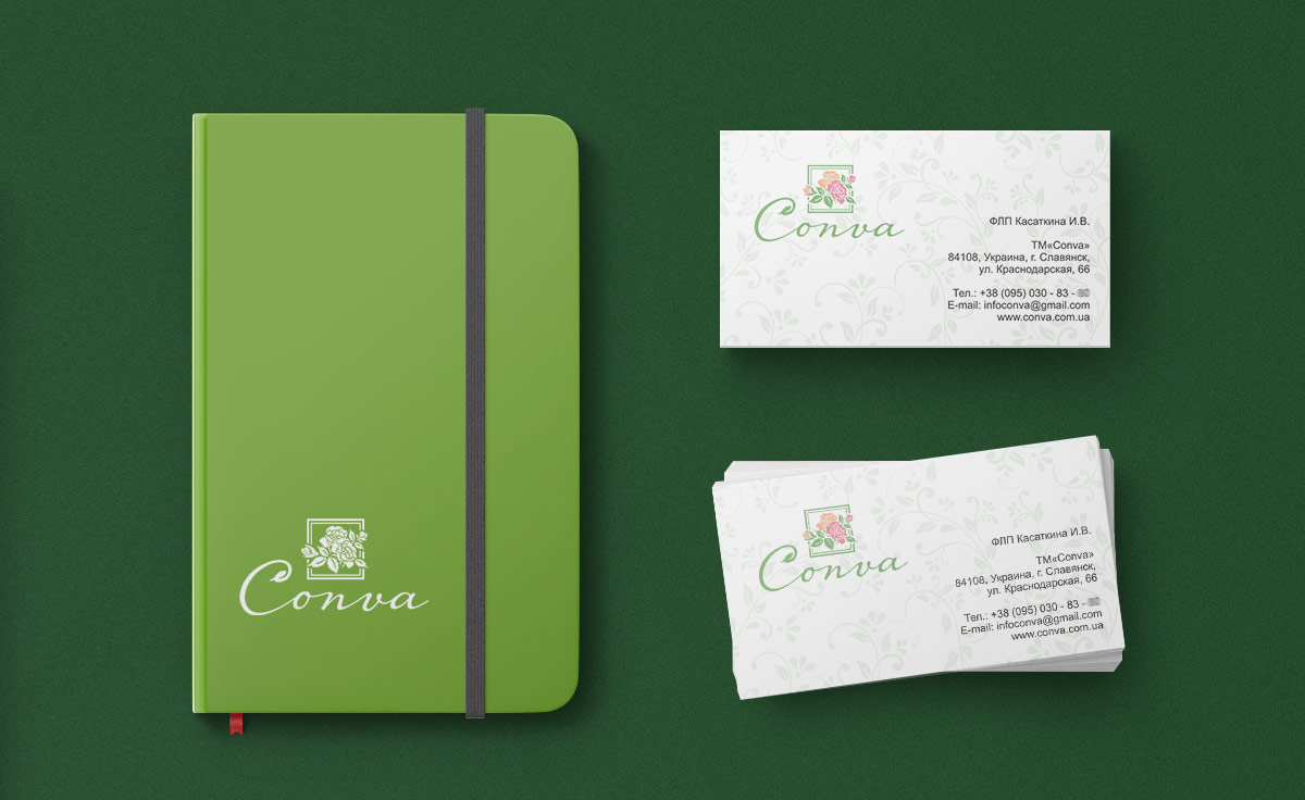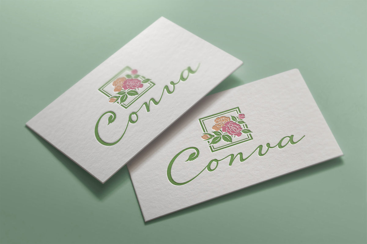 Шрифтове написання назви у логотипі “Conva” розроблено дизайнерами нашої студії та адаптоване під загальний стиль бренду.