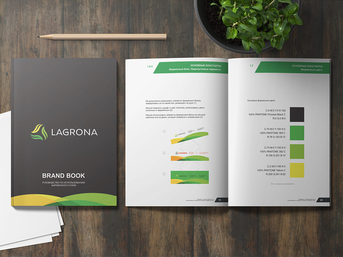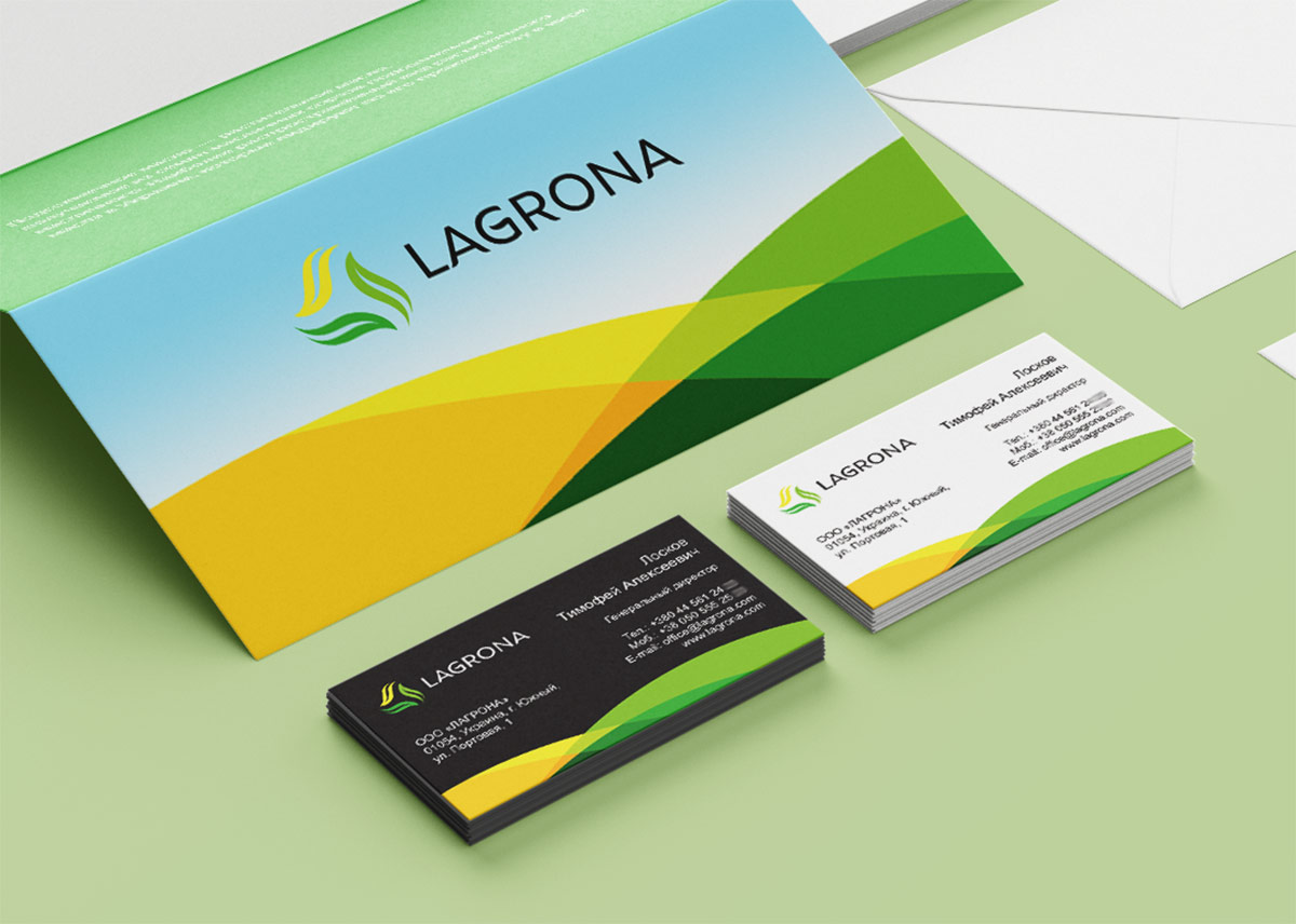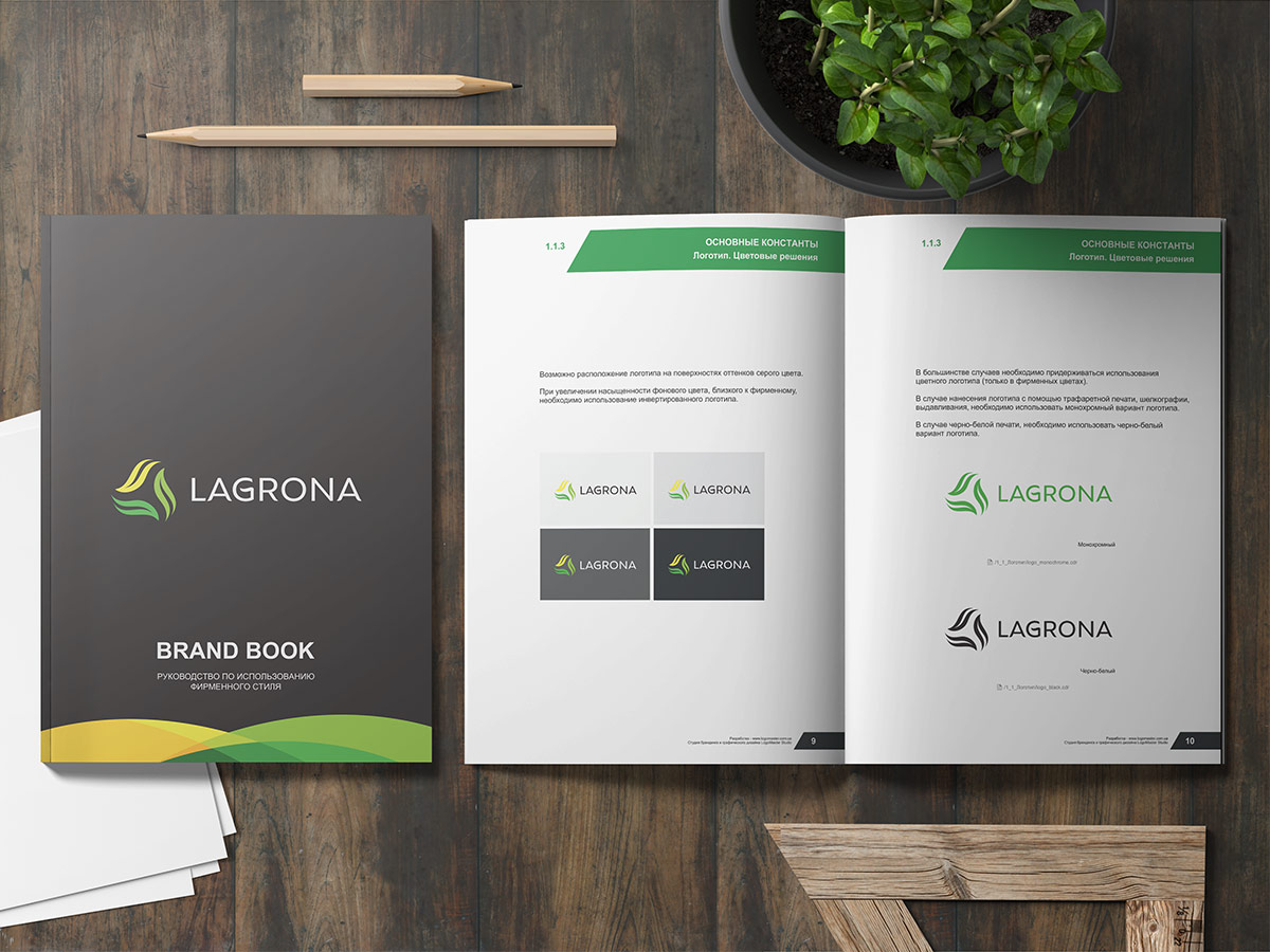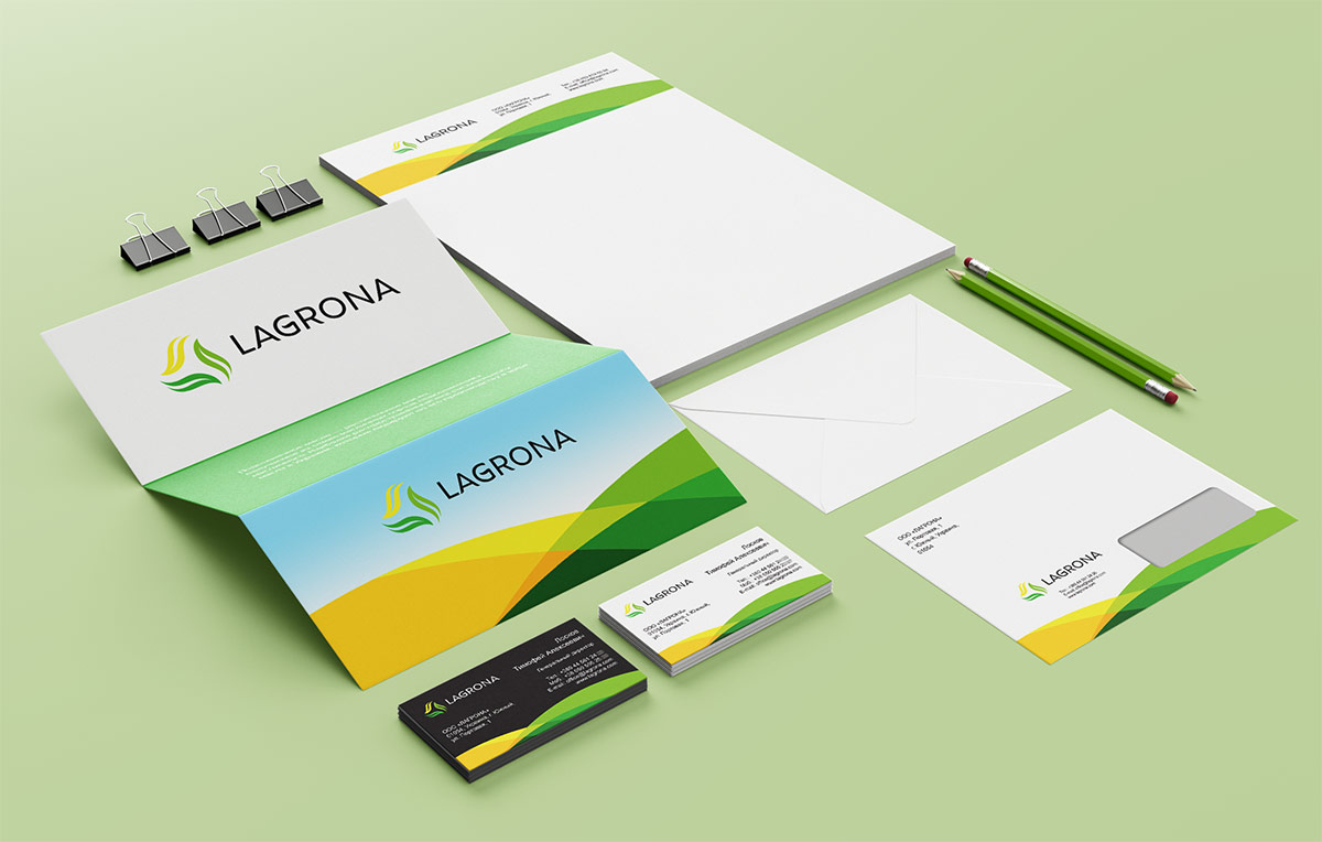 Шрифтове написання назви “LAGRONA” розроблено дизайнерами нашої студії та виконане у строгому стилі.